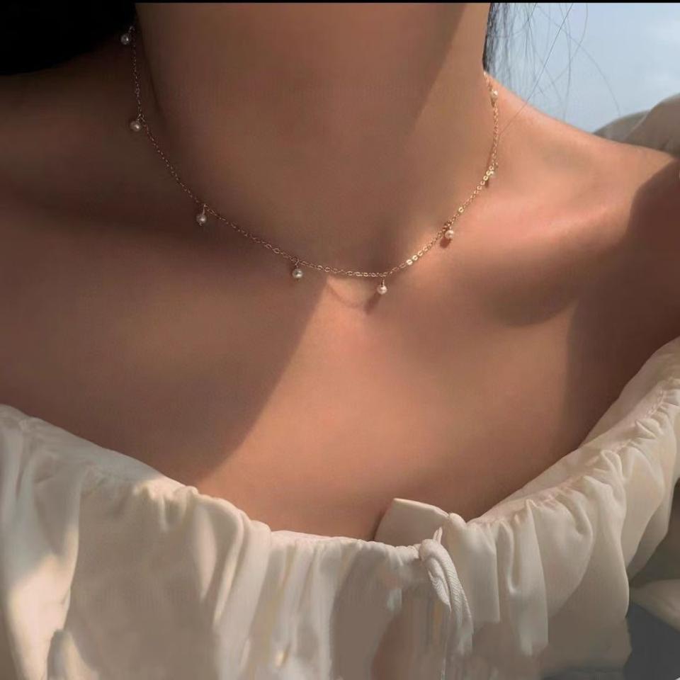 Collar de Perlas de Agua Dulce Naturales, Estilo Cielo Estrellado, Minimalista, Lujoso, Simple, Versátil y con Luz Intensa