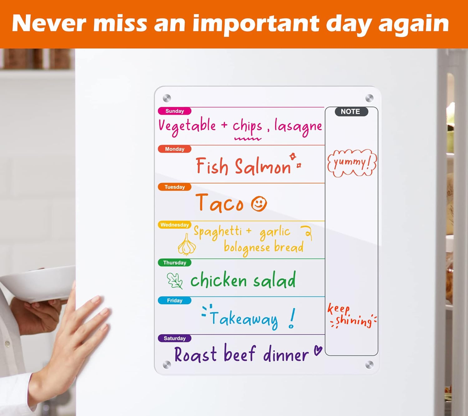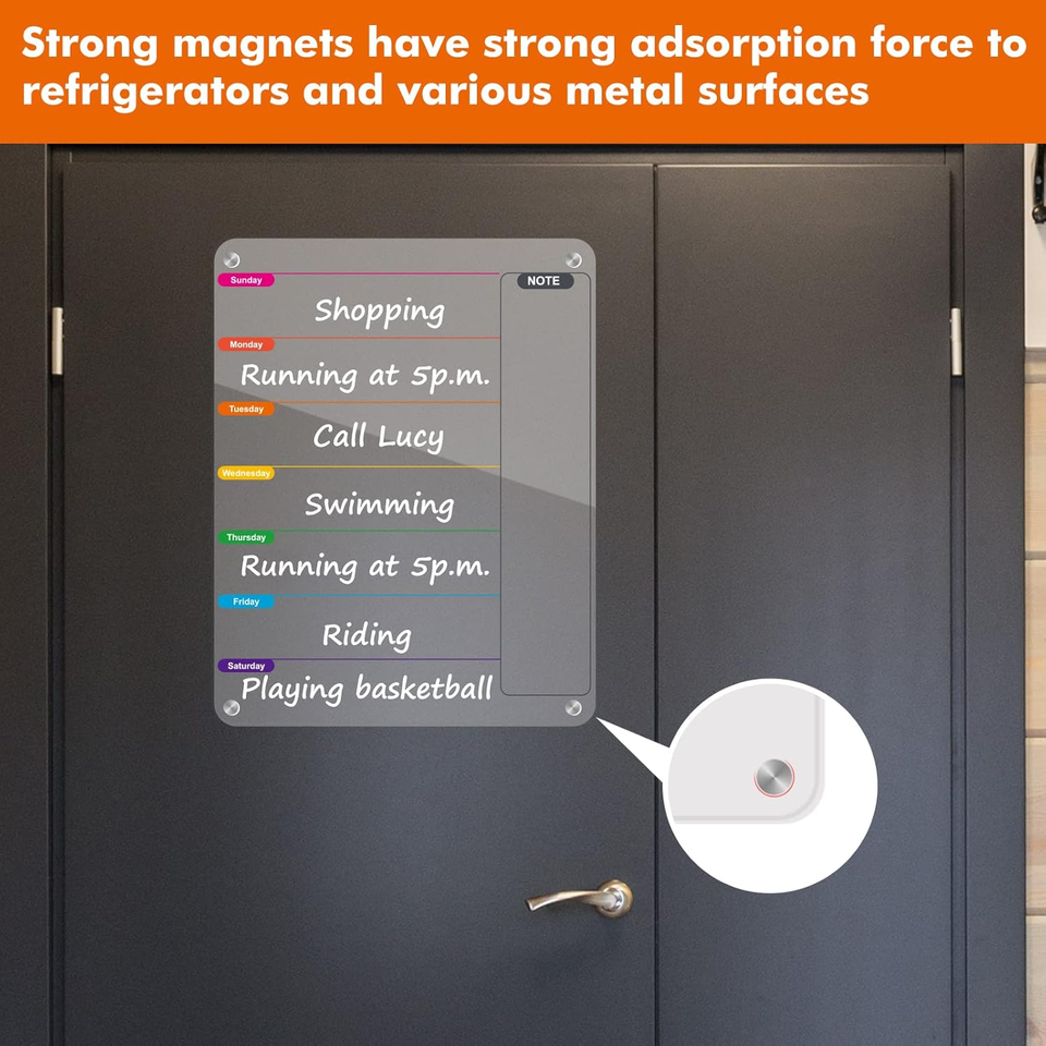 Pizarra Magnética Acrílica Transparente Reutilizable para Planificación, Pizarra Acrílica para Escribir en el Refrigerador, Planificación Semanal