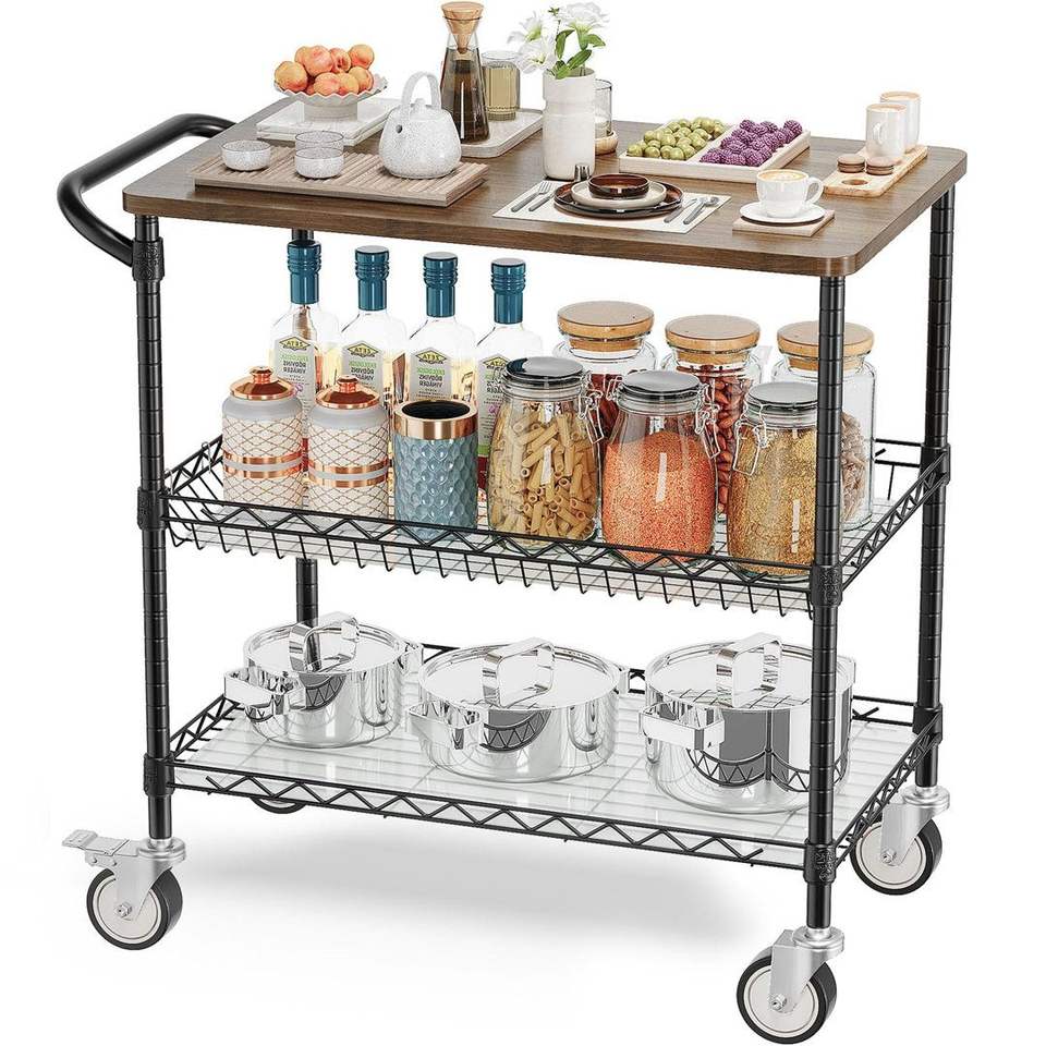 Carrito de Cocina Metálico Resistente con Estantes Utilitarios para Almacenamiento en el Hogar, Organización de Despensa e Interior Moderno