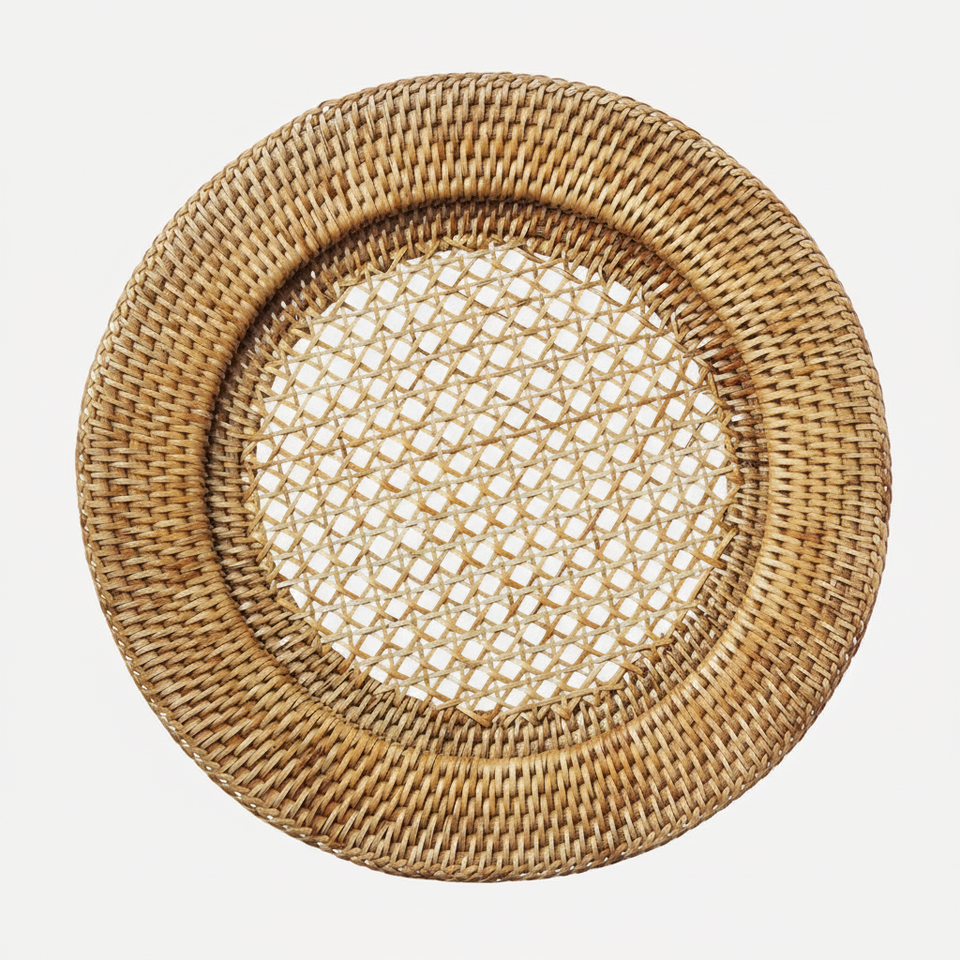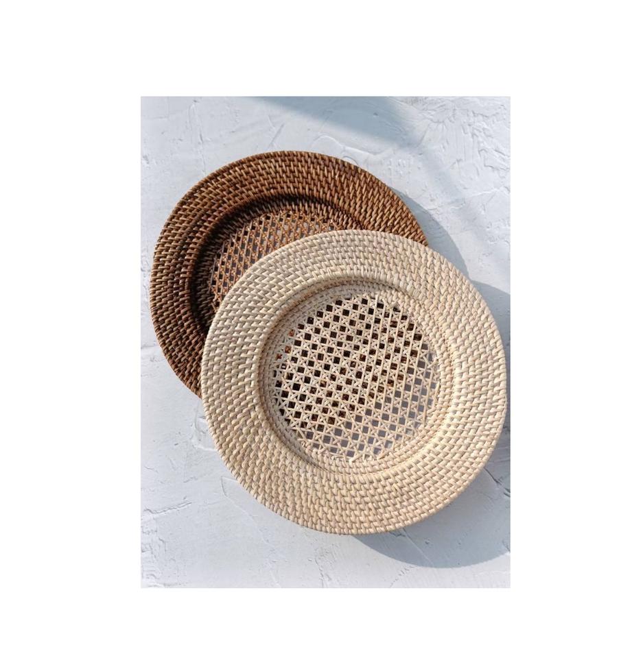 Plato de ratán fuerte con encanto rústico, perfecto para comedores, villas, hoteles, restaurantes y casas de lujo