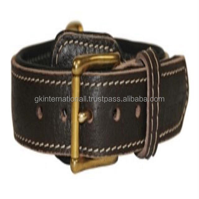 Collar de cuero para perro, accesorio resistente y duradero, completamente cosido y relleno suave, de cuero negro y marrón, con accesorios de acero inoxidable