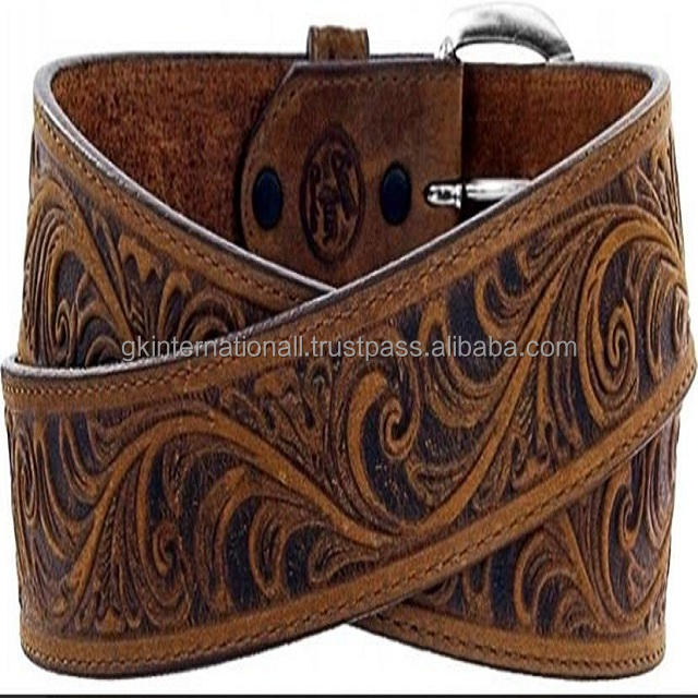Cinturón occidental de cuero fuerte y duradero para hombres, cinturón occidental tallado a mano con relieve floral, de diseñador, venta al por mayor