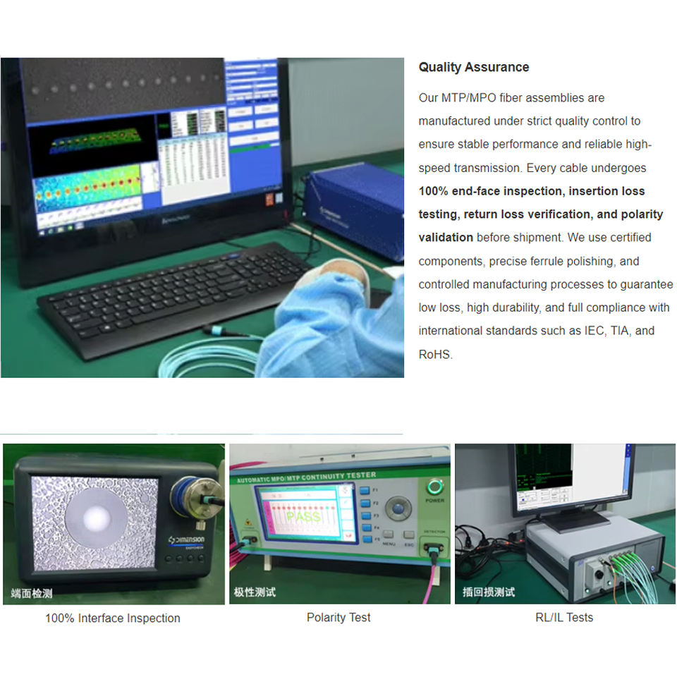 Cable de Conexión de Fibra Óptica Personalizado Estructurado LSZH MTP MPO OM3 OM4 UPC Polaridad-B para Datos de Gran Escala 1M 2M 5M 10M