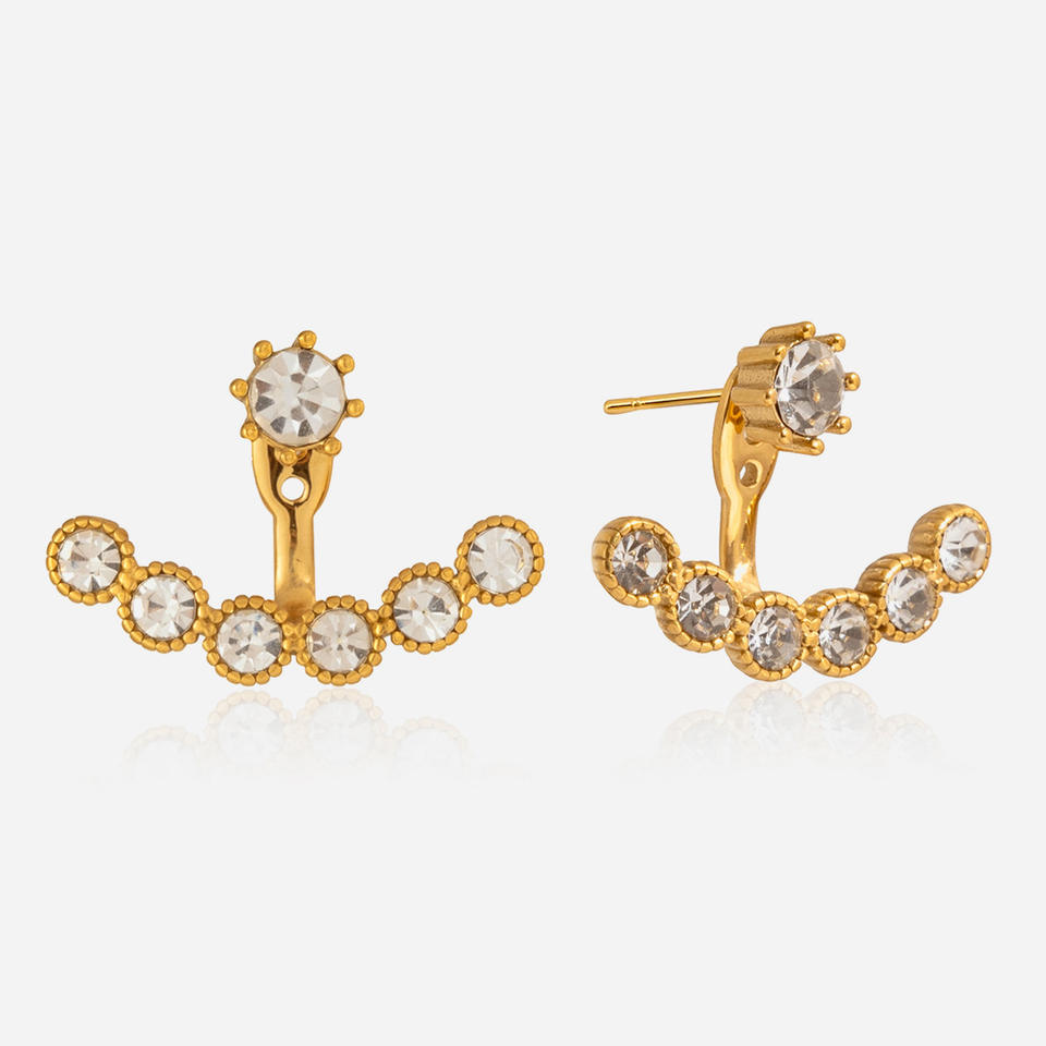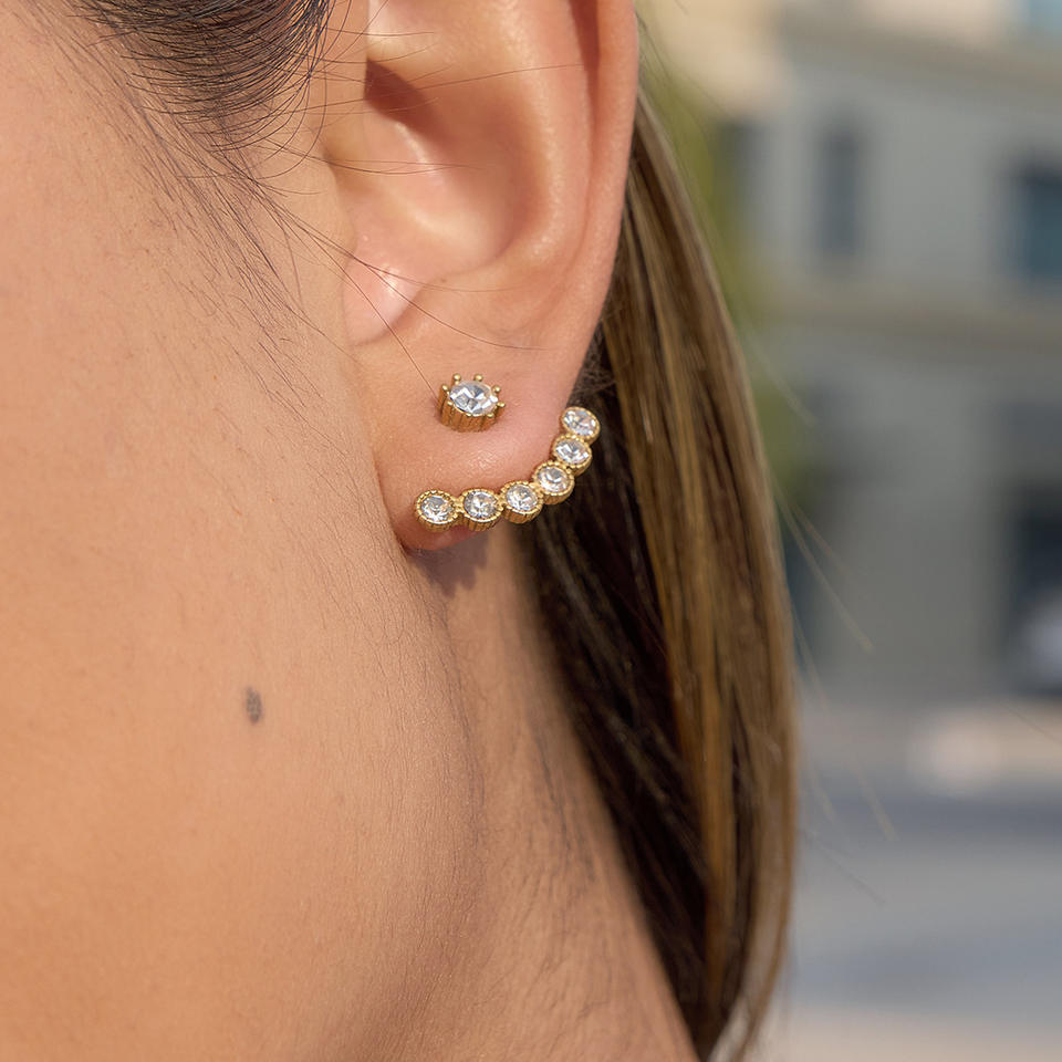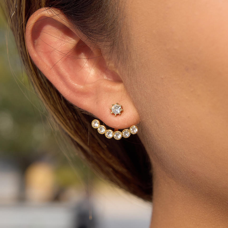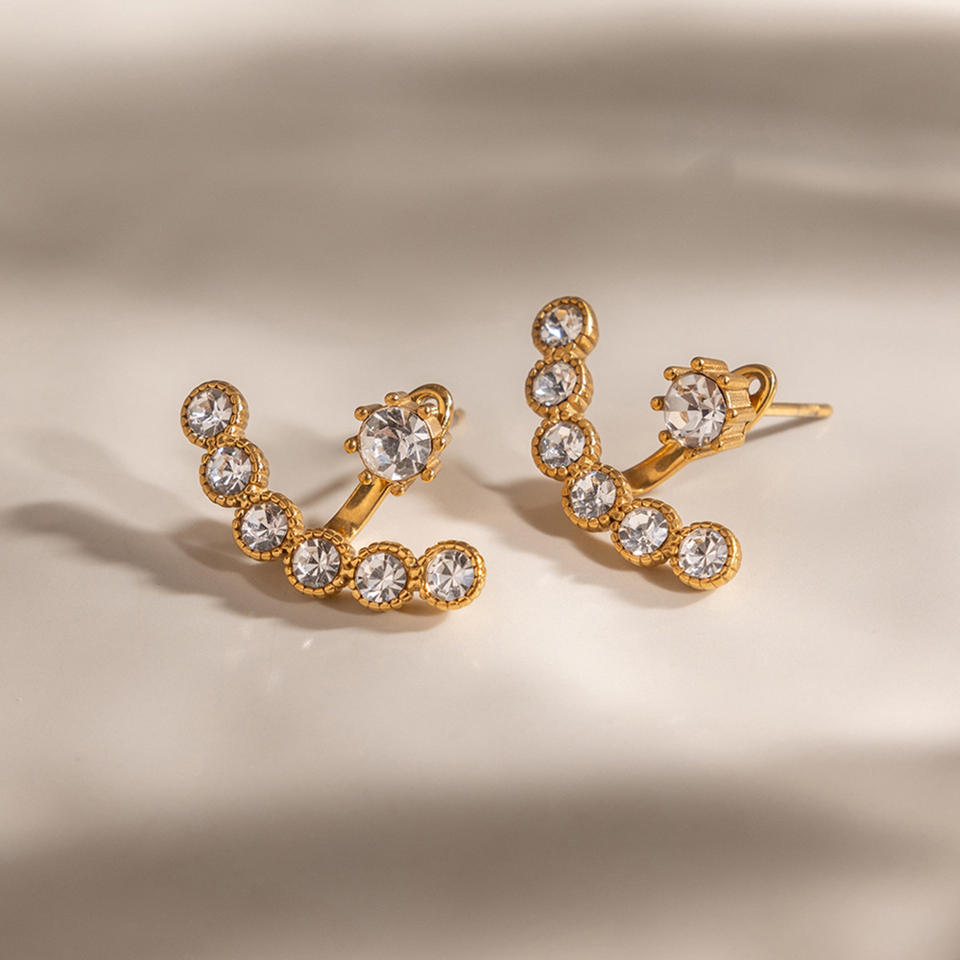 Pendientes de tuerca chapados en oro de 18 quilates con diamantes de imitación y engaste de garra, poste de acero de titanio, diseño geométrico para uso diario