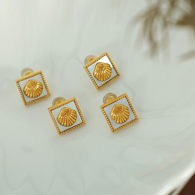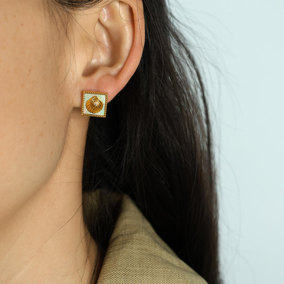 Pendientes geométricos con diseño de concha, pendientes cuadrados de aleación de zinc en oro negro, joyería de moda para mujer, estilo Otoño Invierno