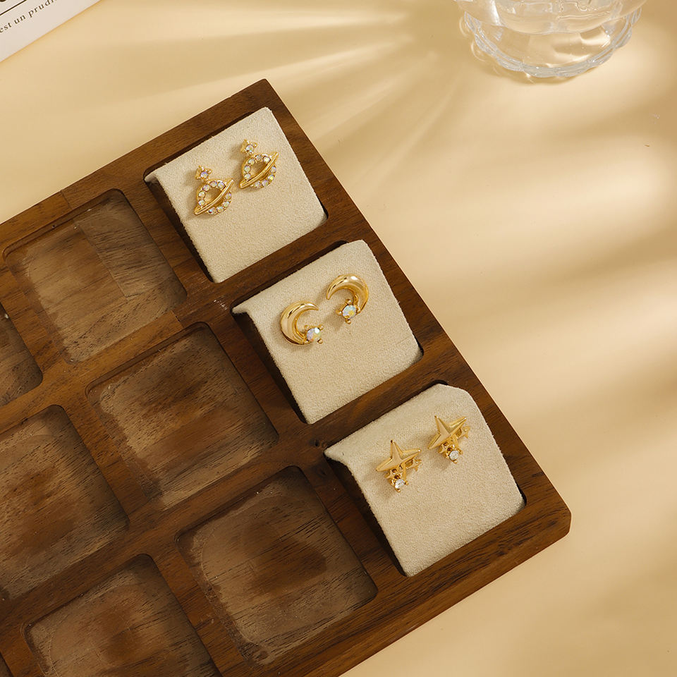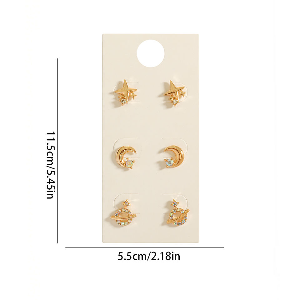 Pendientes de Botón Chapados en Oro con Diamantes de Imitación de Colores, Diseño Delicado Inspirado en Estrellas, Luna y Planetas, para Uso Diario Informal, para Mujeres Jóvenes