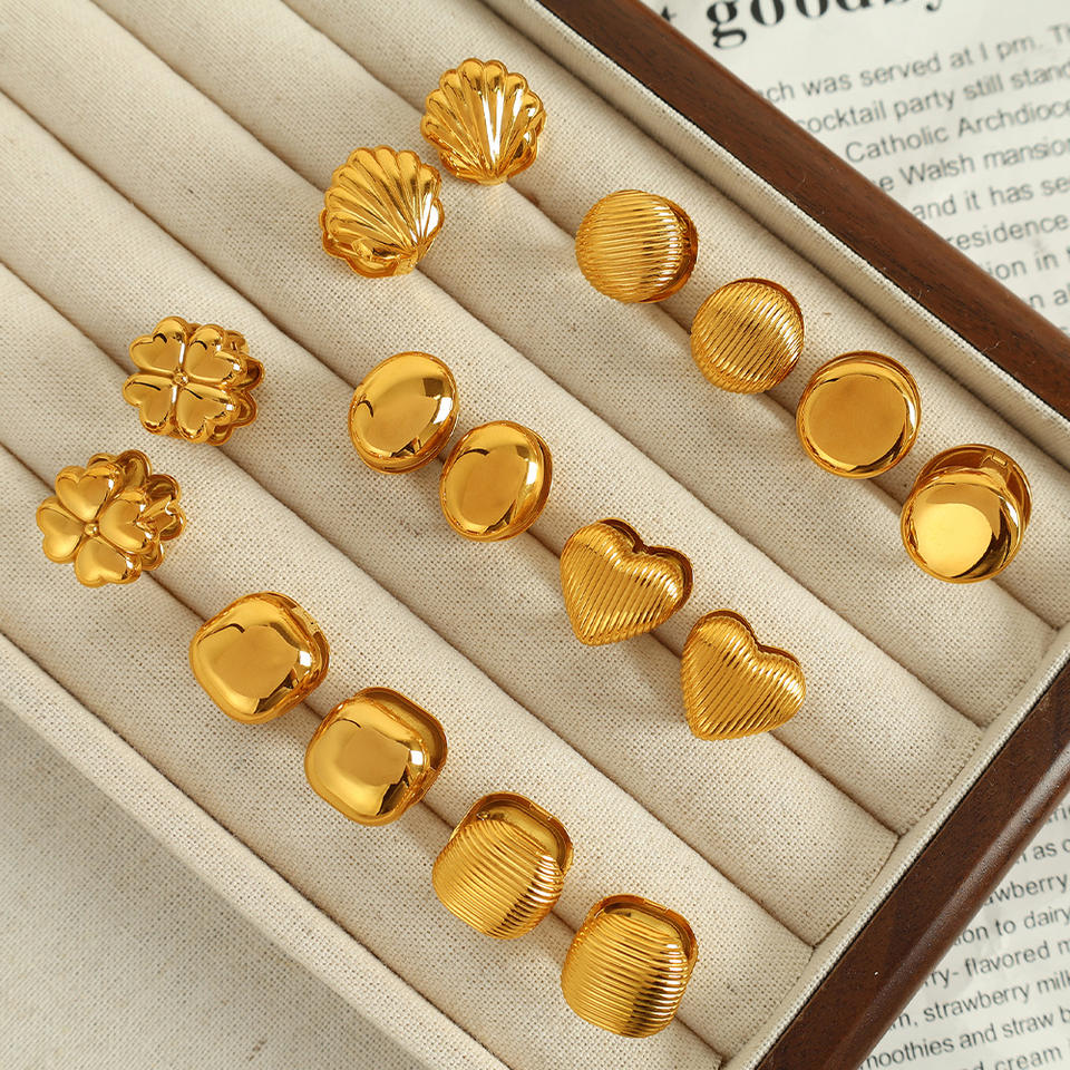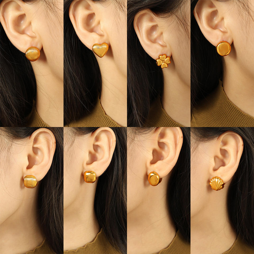 Pendientes de botón con diseño geométrico de corazón, concha y trébol, de acero de titanio, joyería de moda para mujer, para fiestas
