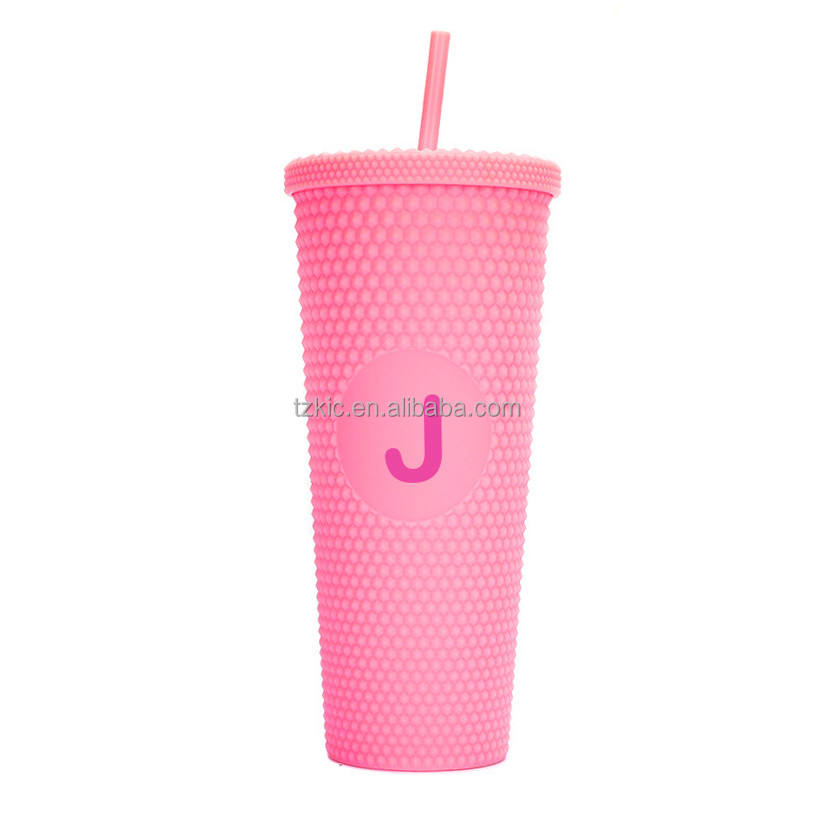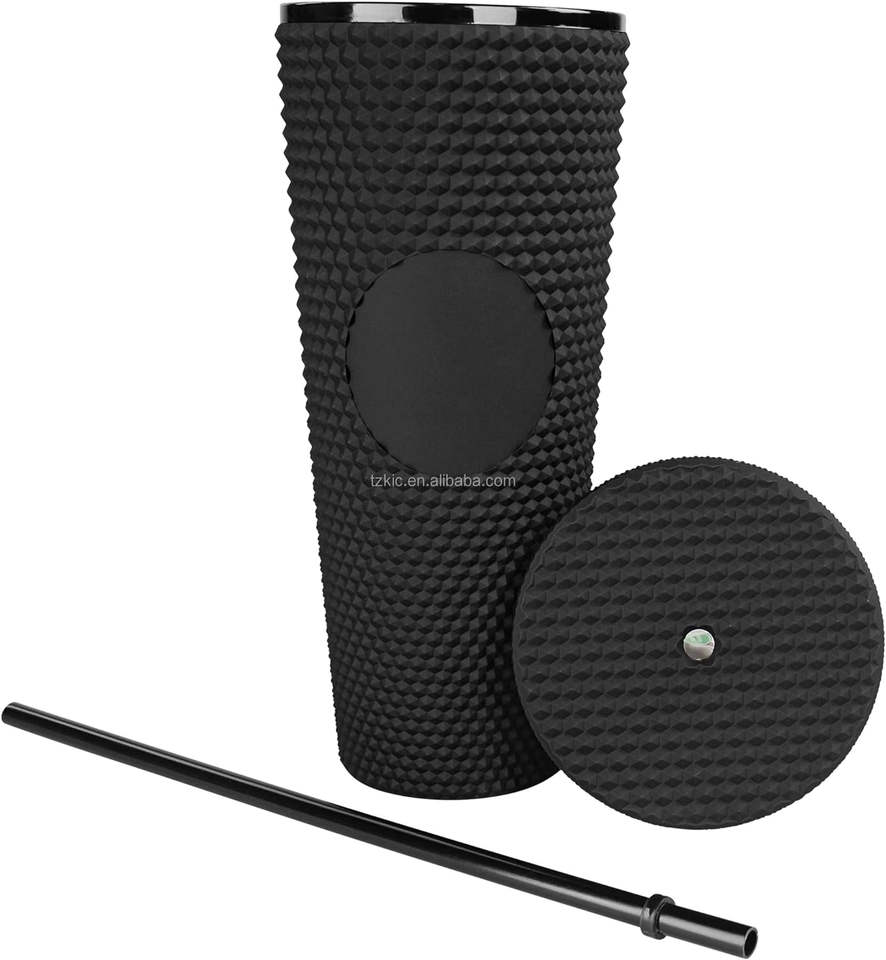 Vaso de Viaje Mate de Doble Pared con Tapa Hermética y Boca Ancha, Dorado Translúcido con Tachuelas Brillantes, para Café Helado