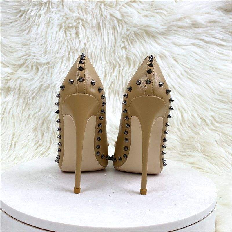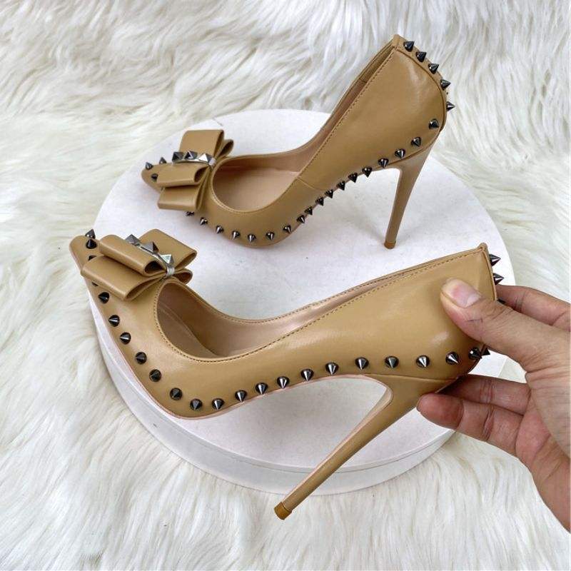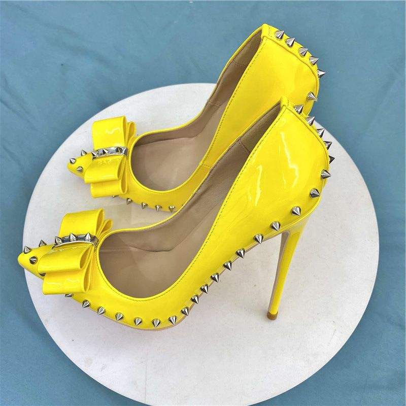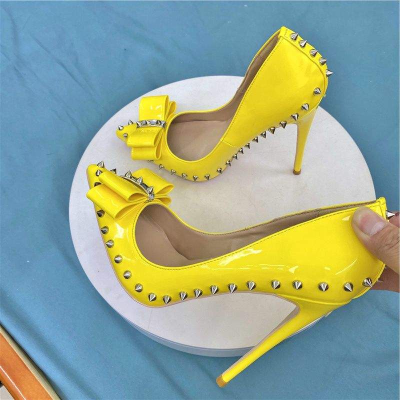 Zapatos de Tacón Alto con Remaches y Lazo para Mujer, Zapatos de Trabajo, Tacones de Aguja