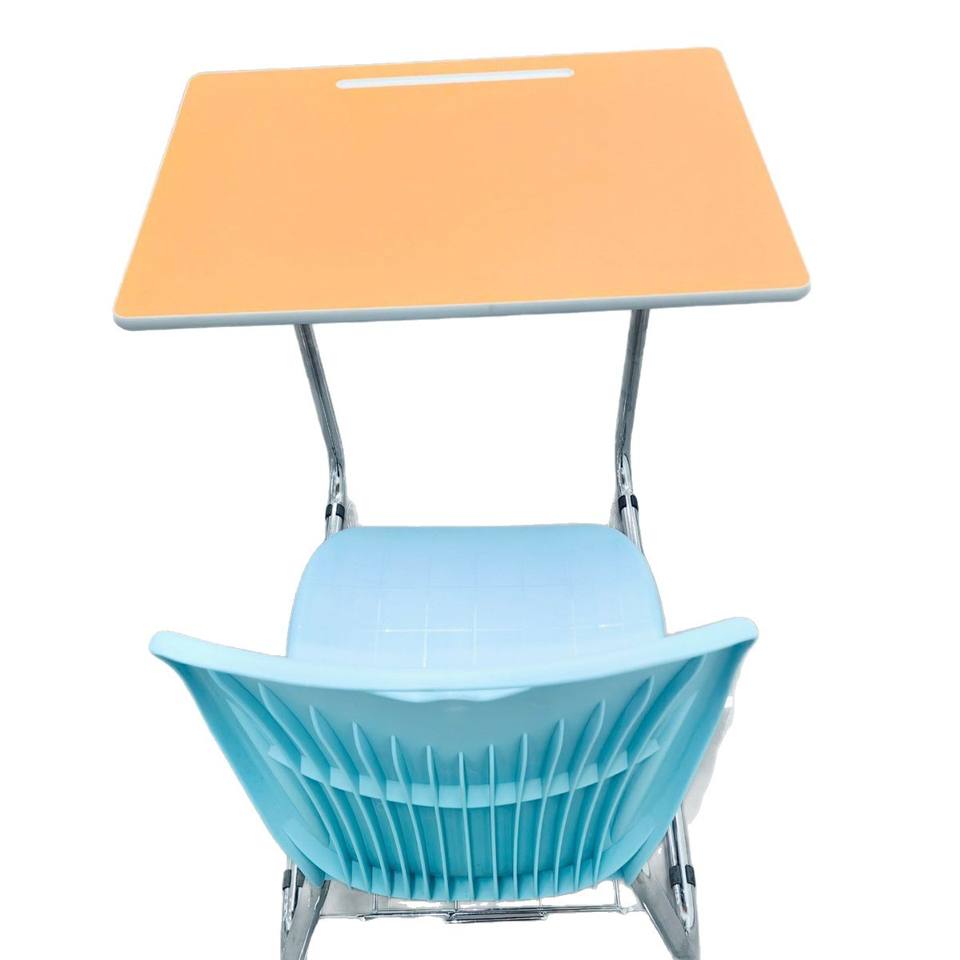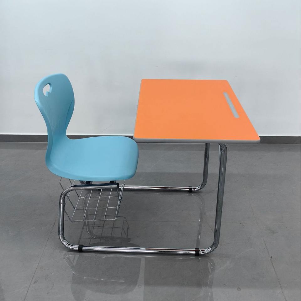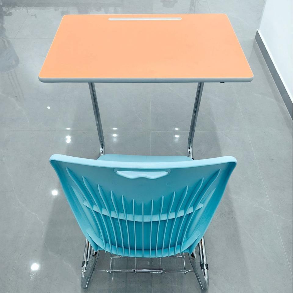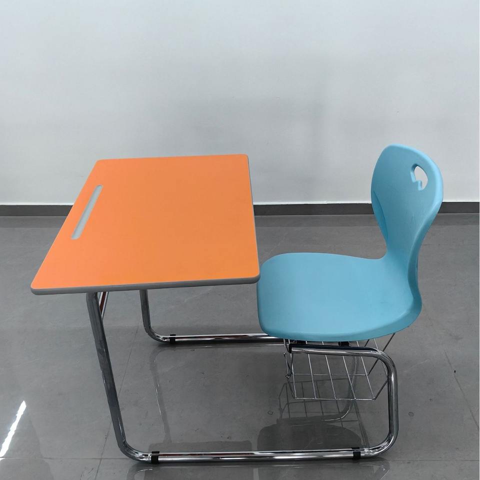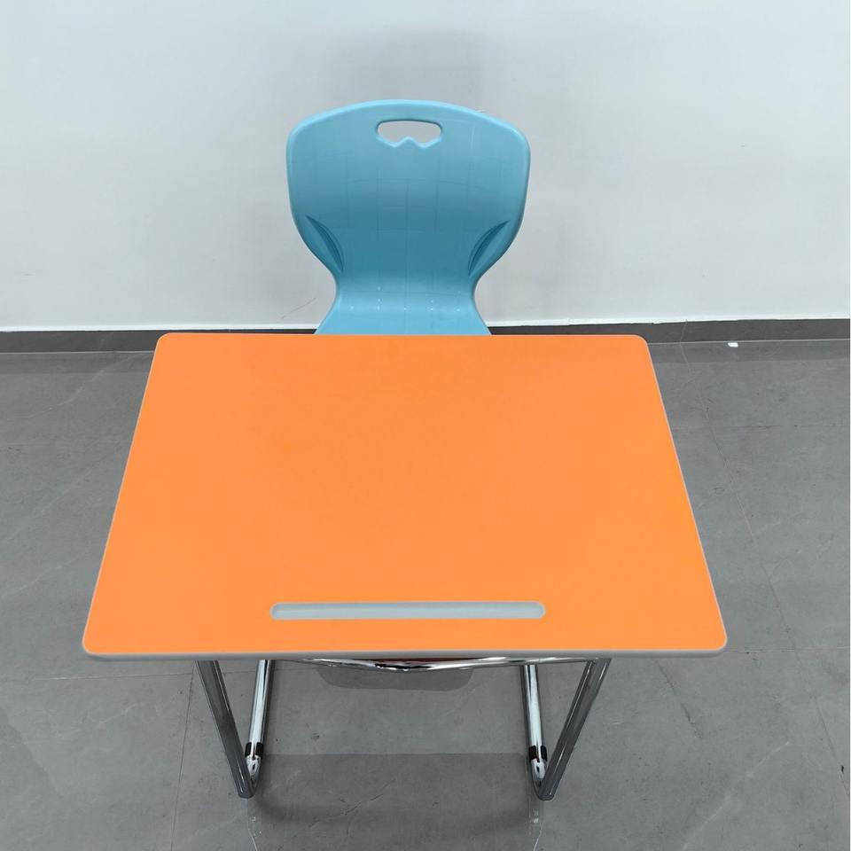 Conjunto de escritorio y silla para estudiantes, tapa de plástico naranja, patas de metal, muebles escolares ajustables, diseño moderno, 70x50x87cm