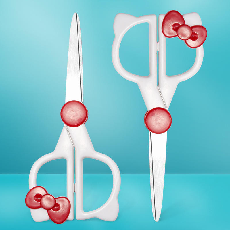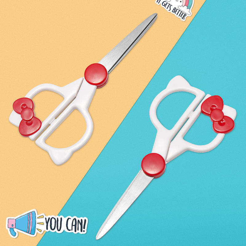 Student Scissors Stainless Steel White Red Bow Design For Art And Home Use