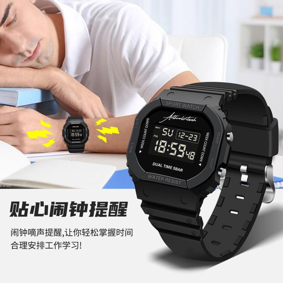 Reloj Electrónico Cuadrado para Estudiantes, Multifuncional, Luminoso, Resistente al Agua, Reloj Digital LED de Alta Calidad