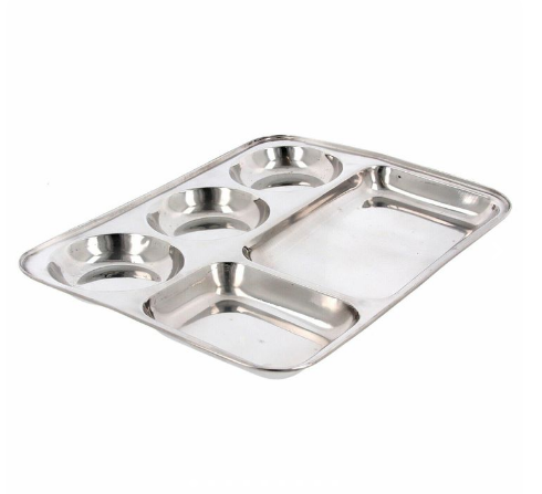 Bandeja de comida rápida de acero inoxidable moderna para trabajadores estudiantiles, plato de almuerzo de cuatro compartimentos y platos, Bandejas para servir