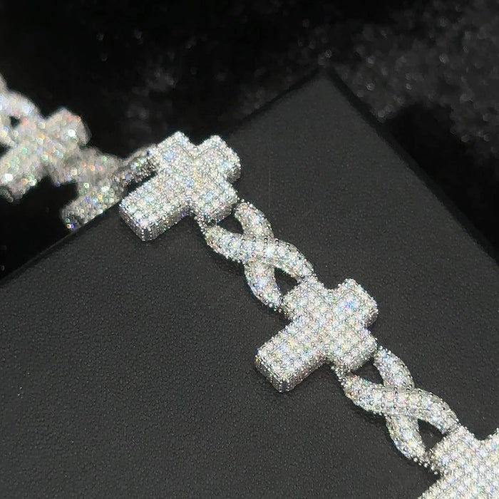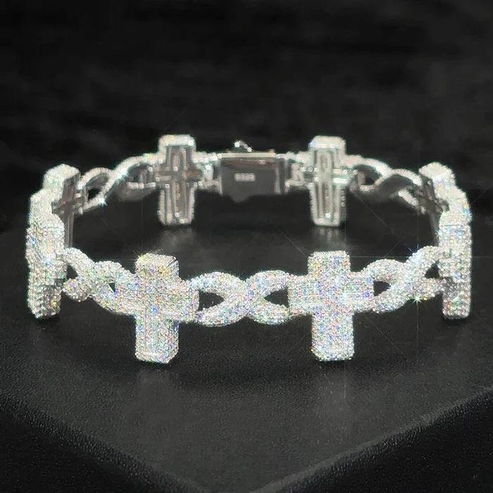 Impresionante Brazalete de Plata de Ley con Diseño de Cruz Infinita y Moissanita Redonda, Chapado en Plata