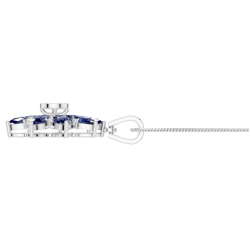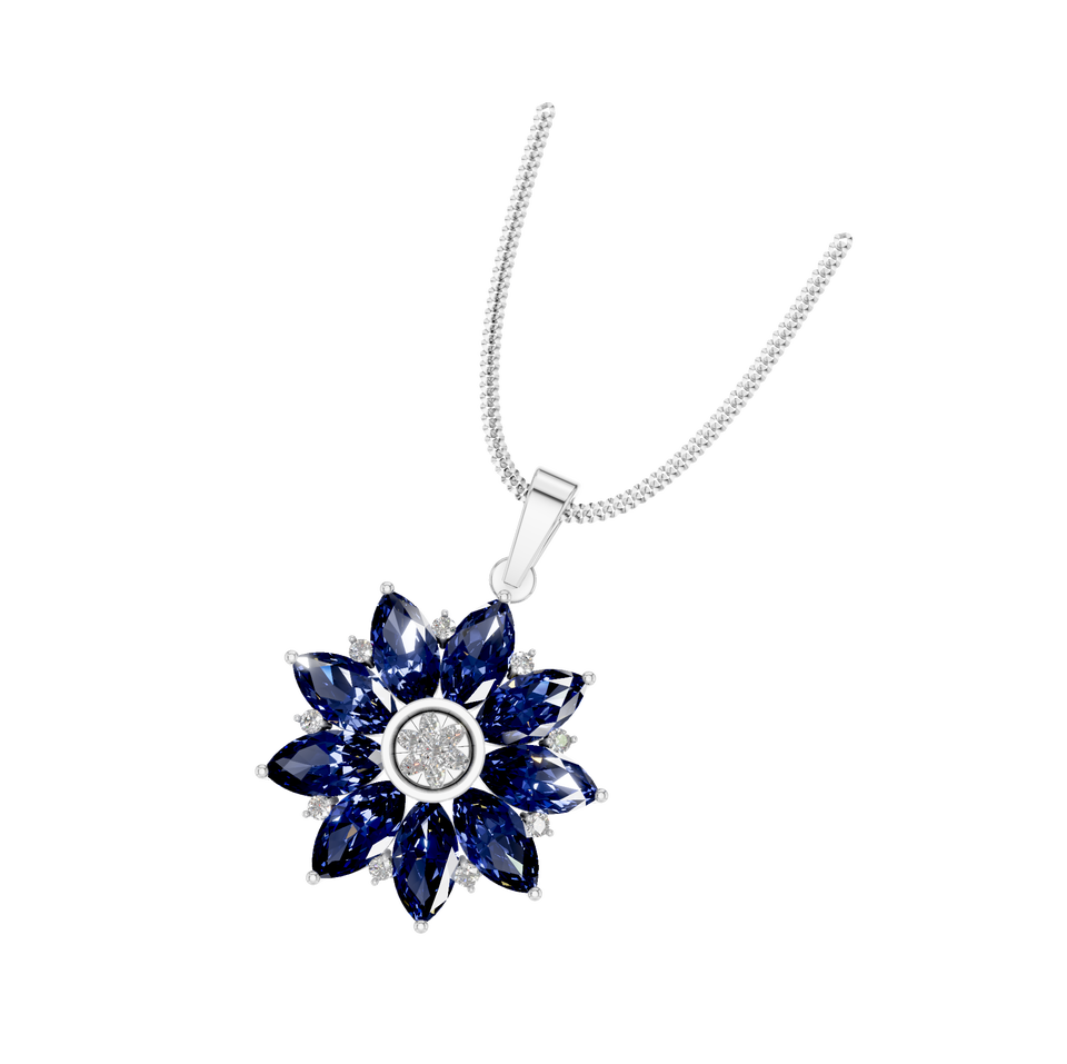Impresionante collar con colgante de zafiro azul Marquesa, diseño de Flor de Oro y Plata clásico, regalo de lujo para ella en plata de ley