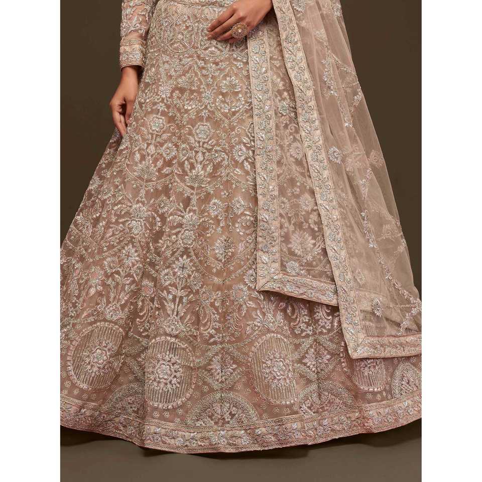 Impresionante Vestido de Novia Lehenga Choli de Tela Suave con Bordado Beige Real y Dupatta