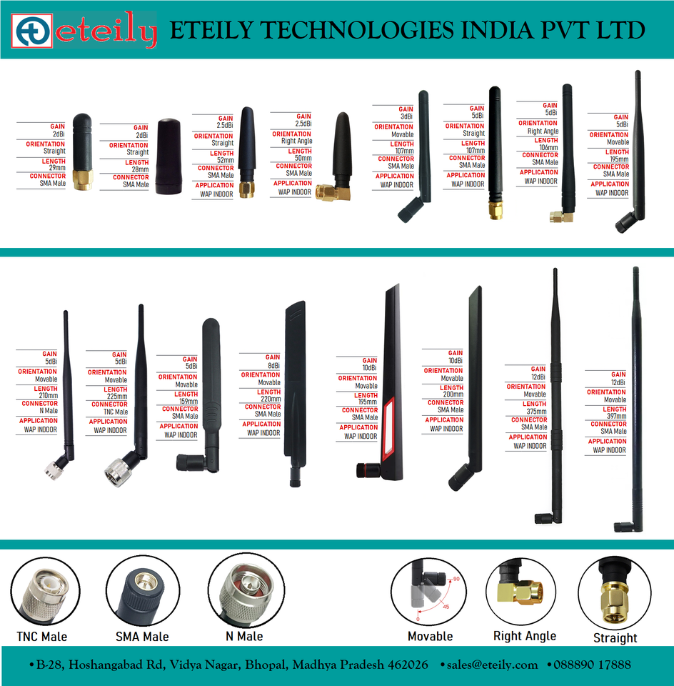 Antena de paleta de pato de goma resistente 4G 7dBi, larga duración con conector SMA (M), cuerpo móvil fabricado en India por ETEILY