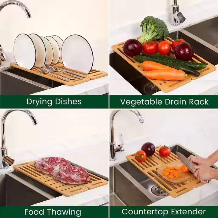 Escurridor de platos de bambú plegable resistente, estera plegable que ahorra espacio, fregadero plegable, tendedero para Cocina