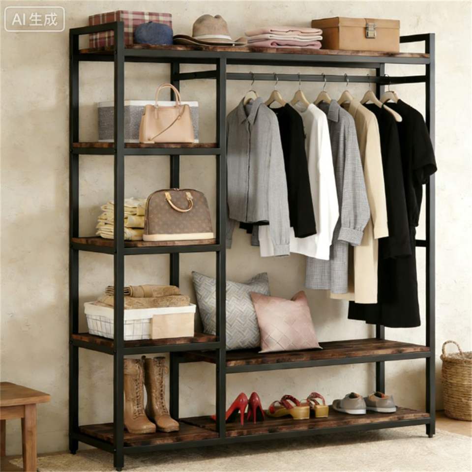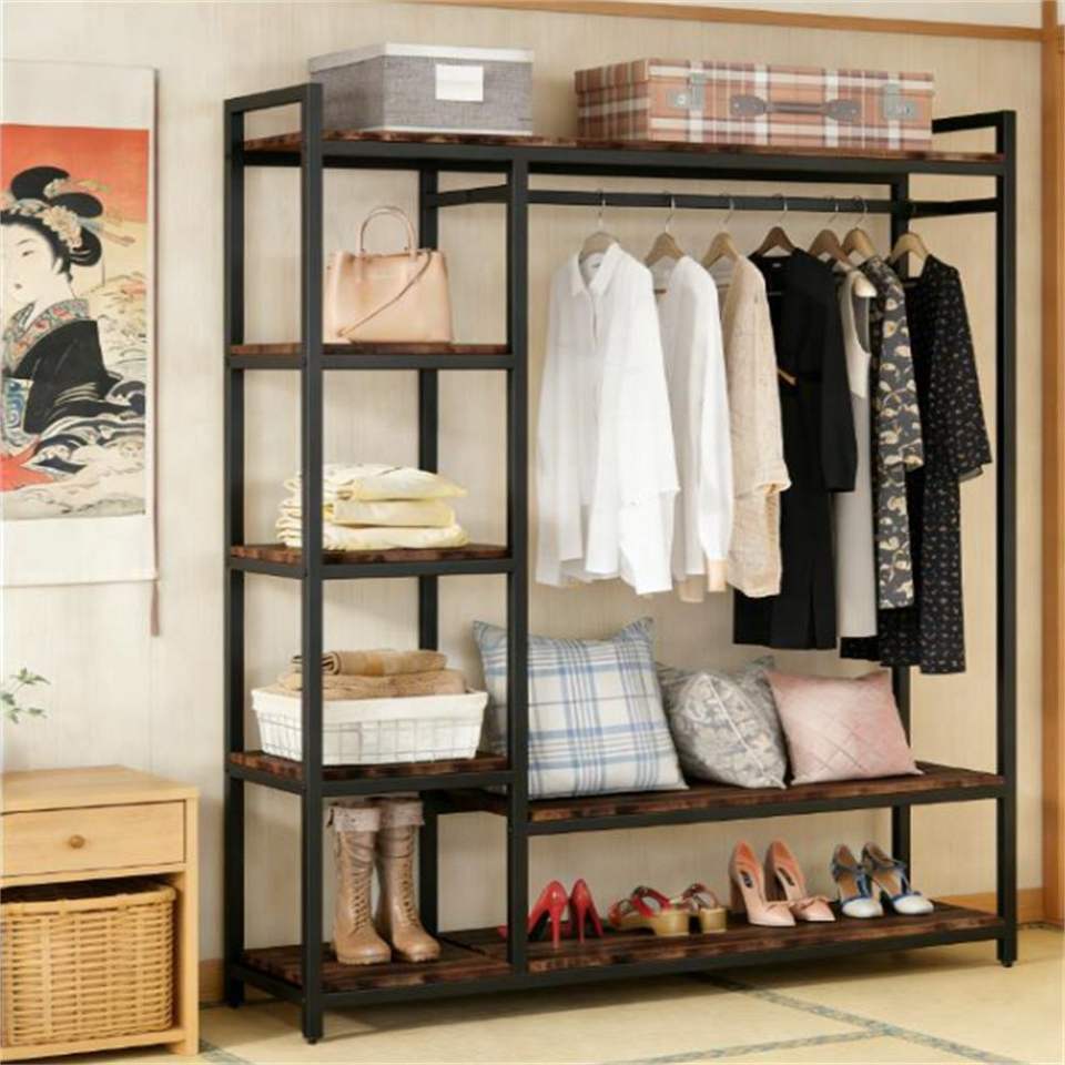 Armario Independiente con Estructura Metálica Resistente, Estante de Almacenamiento y Perchero