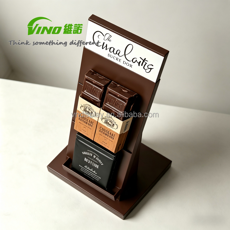 Exhibidor de Chocolate de Madera Moderno y Resistente, con Niveles, en Ángulo, para Mostrador, Exhibición Comercial y Minorista