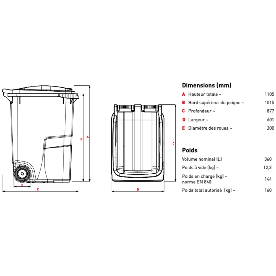 Bacs Poubelles PEHD - Sólidos y Maniobrables