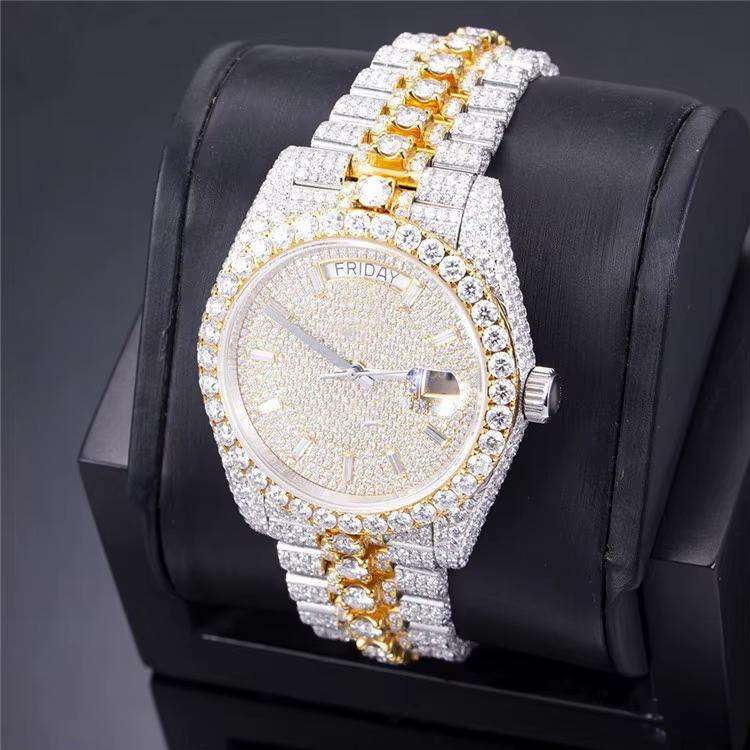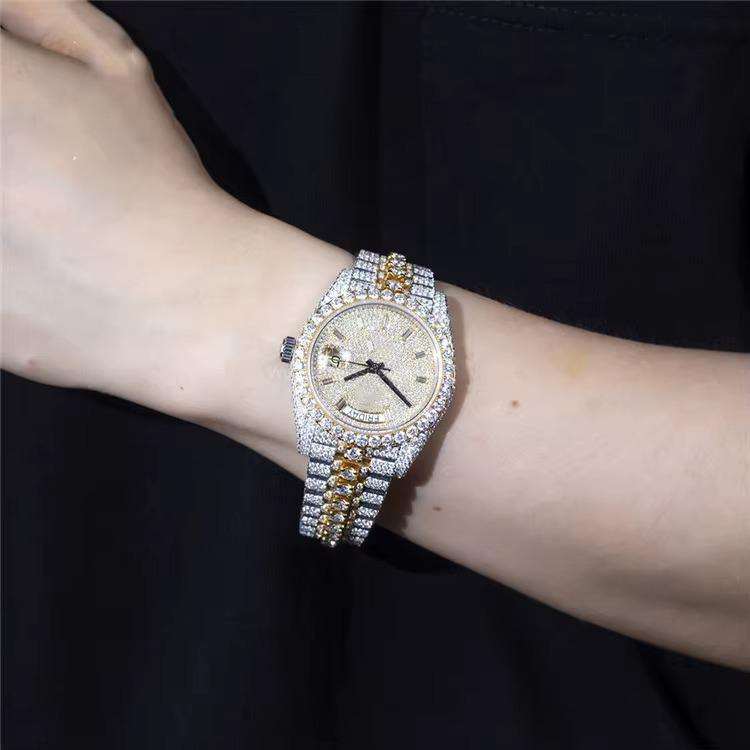 Reloj de Pulsera Elegante y Moderno con Diseño de Diamantes Moissanite y Centro Chapado en Oro para Uso Profesional en Venta