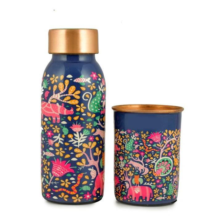 Botella de Agua de Cobre con Diseño Estampado, 500 ml, a Prueba de Fugas, Duradera para Uso Diario, Botella de Agua de Cobre Puro, a Prueba de Fugas y Auténtica
