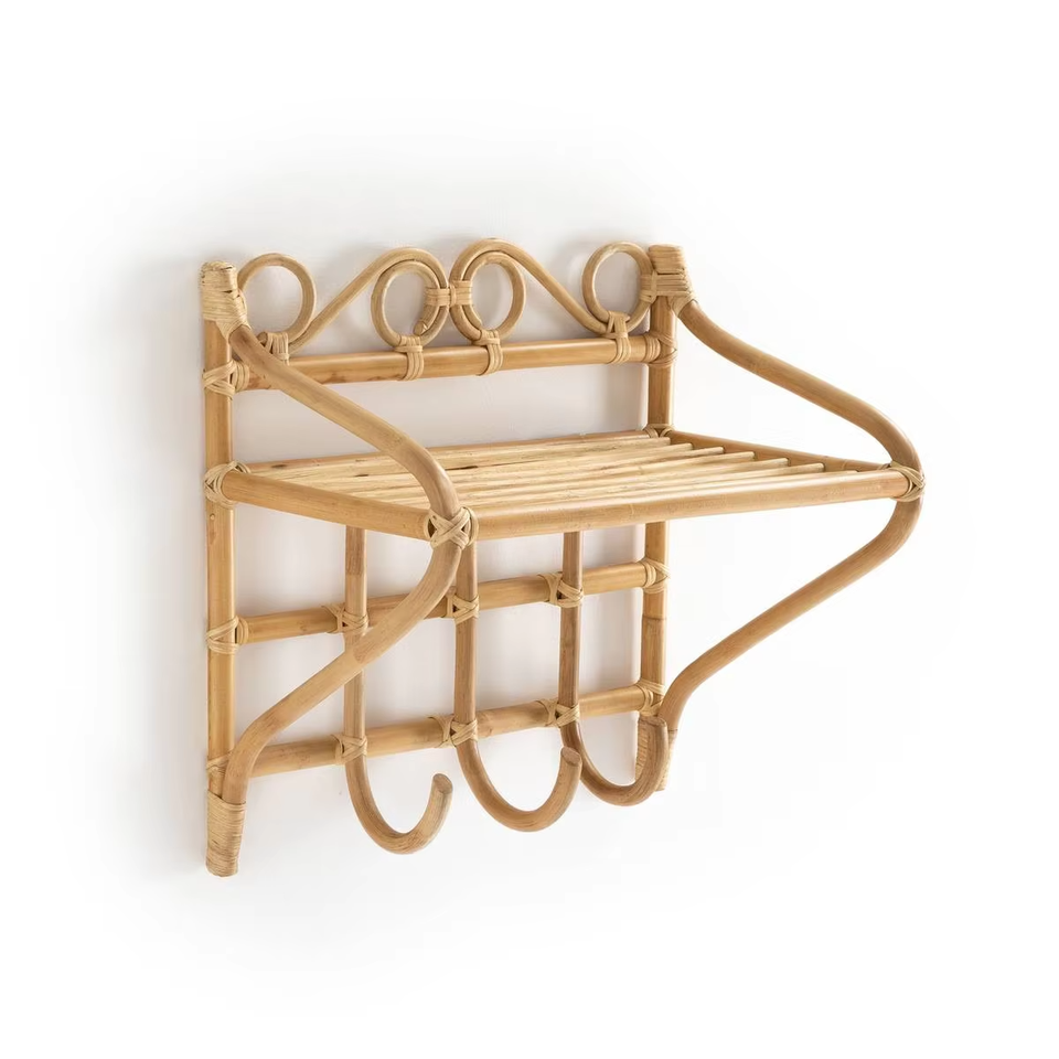 Tamaño: L19,7 x W11,8 x H15,7 pulgadas:Estante de pared de ratán estilo con ganchos percha paño