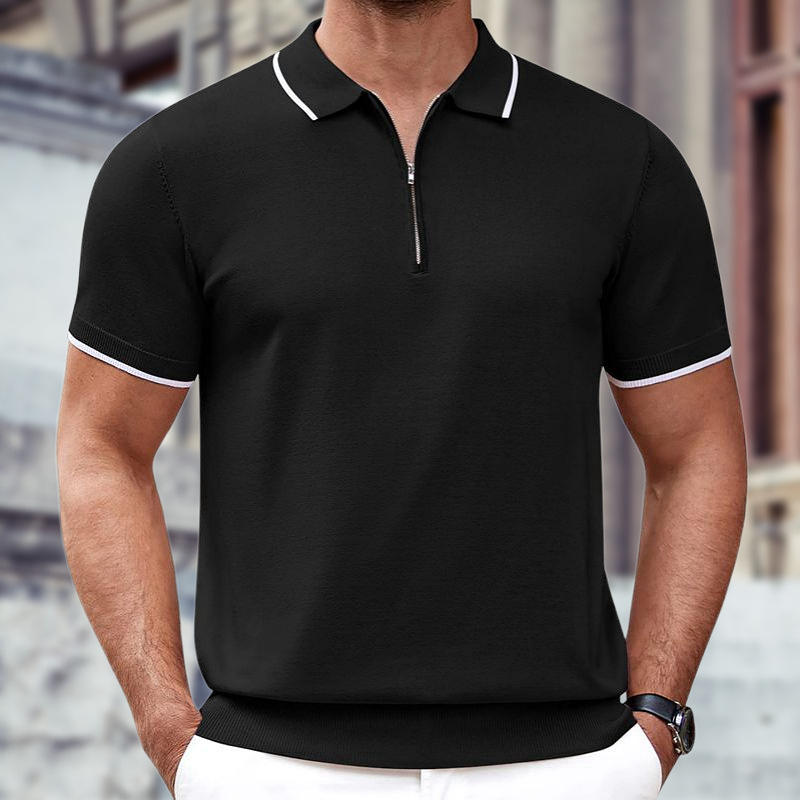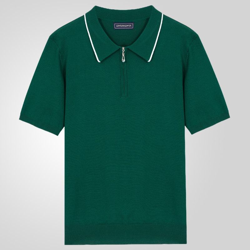 Camisa Polo Casual de Verano para Hombre, 100% Algodón, Tejido Liso con Cuello de Solapa con Cremallera