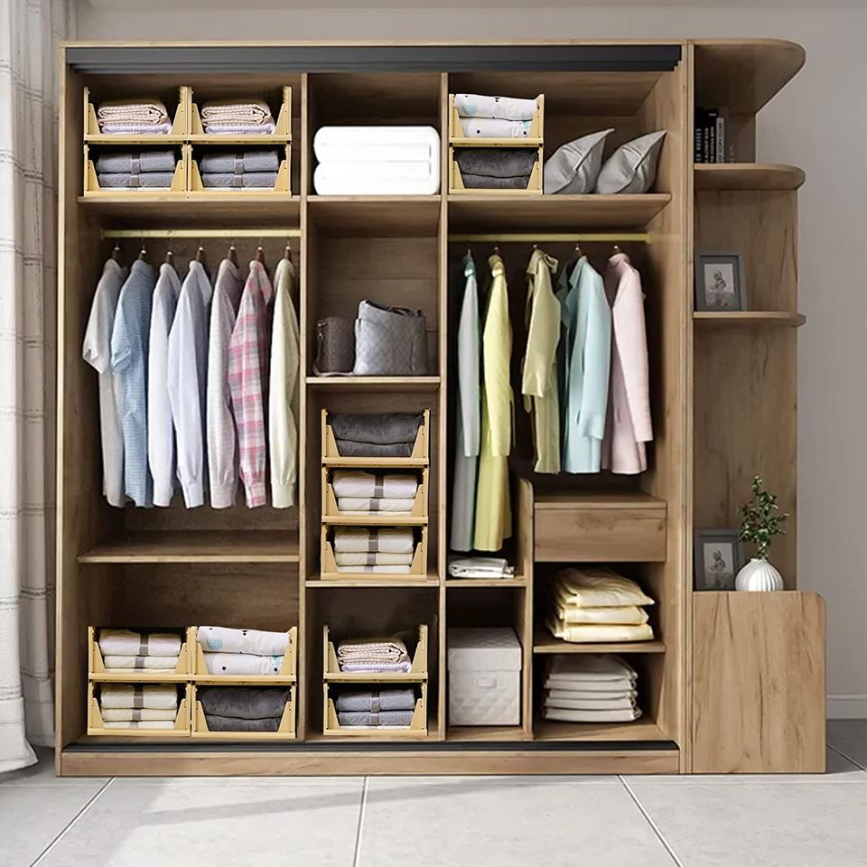 Organizador de armario Stylera (paquete de 4 piezas de tamaño extra grande, color amarillo) Organizadores multiusos para ropa, plegables