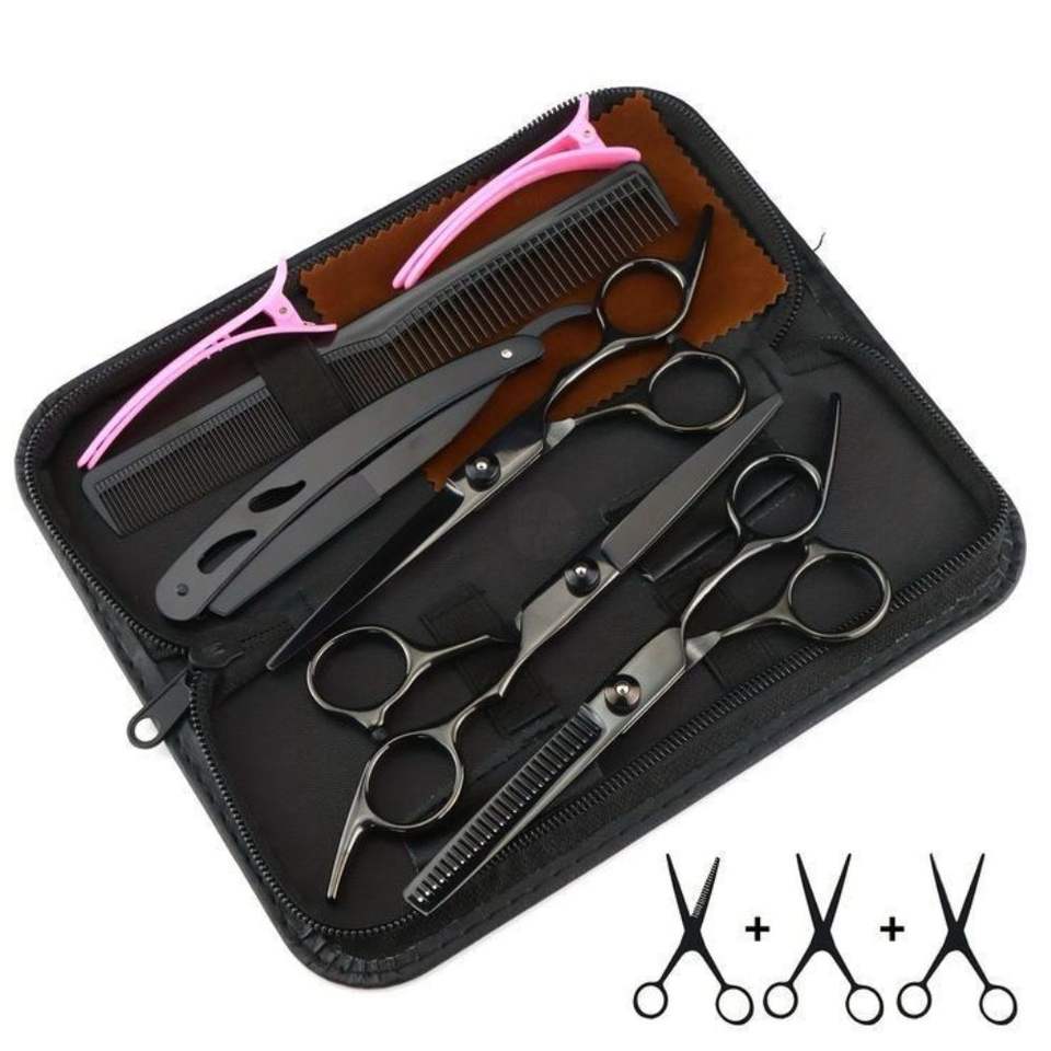 Juego de Tijeras de Peluquería (8 piezas) - Negro