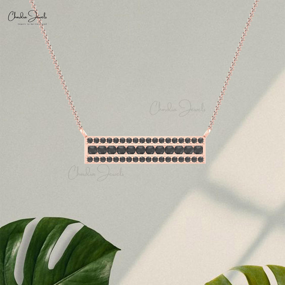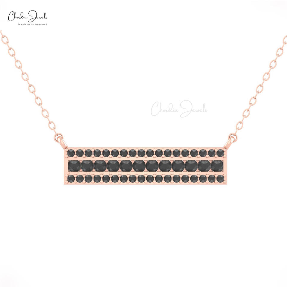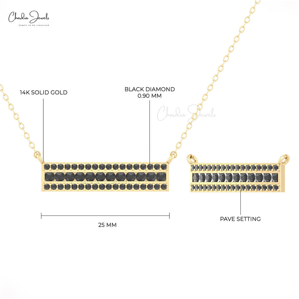 Elegante Collar de Barra Rectangular Delicado de Oro Sólido de 14K con Diamantes Negros de 2mm Engastados en Pavé, Joyería Nupcial, Proveedor B2B