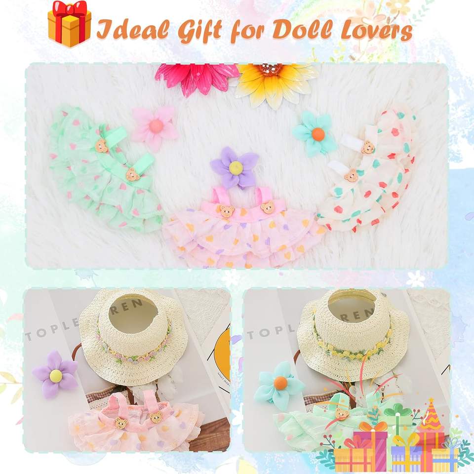 Elegante conjunto de muñeca de plástico de 17cm, vestido Floral rosa de 3 piezas y sombrero de paja de moda, incluye accesorios