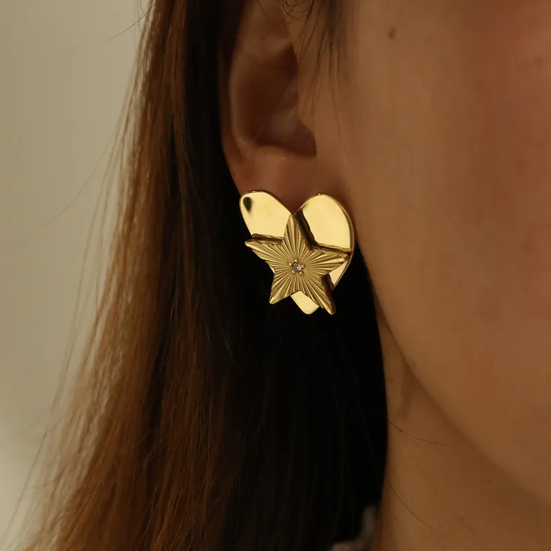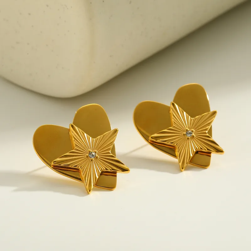 Pendientes Elegantes de Acero Inoxidable 304 Chapados en Oro de 18K con Forma de Estrella y Corazón, Estilo Vintage, para Mujer, Diseñados para Uso Diario