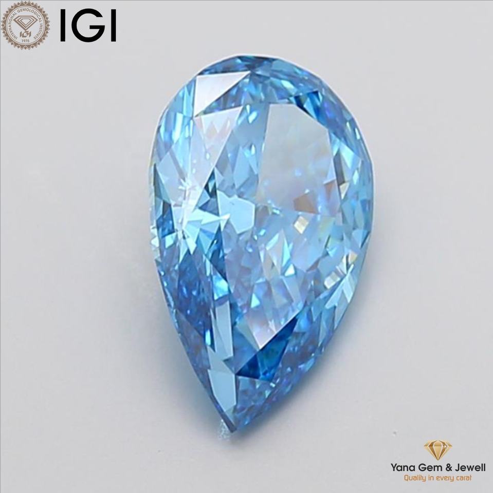 Elegante Diamante Cultivado en Laboratorio CVD de 3.50 Quilates, Corte Pera, con Certificado IGI, Claridad VS1, Color Azul Intenso para Centro de Brazalete