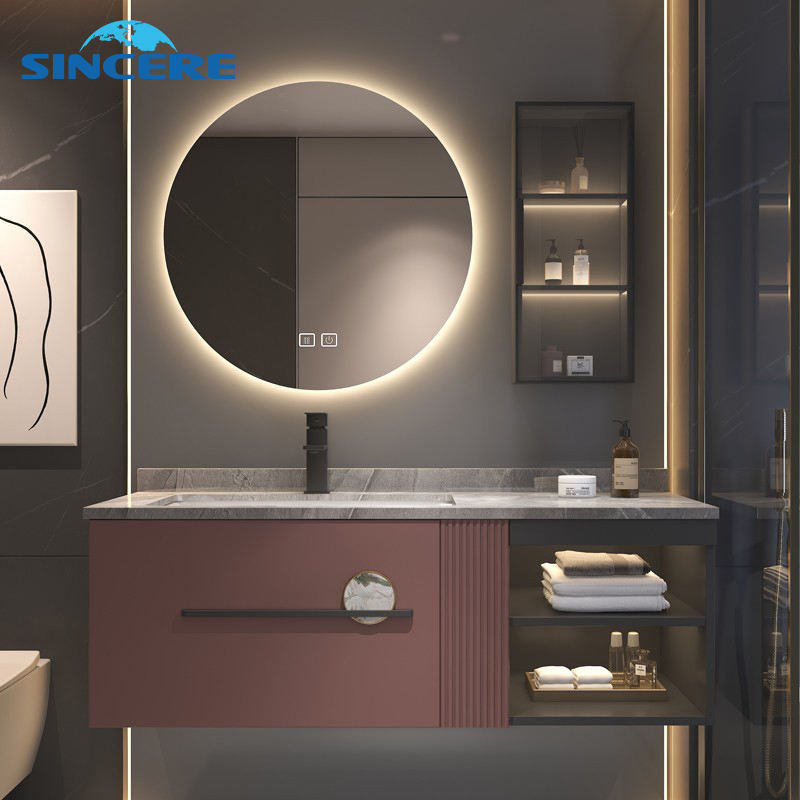 Elegante todo en uno a prueba de óxido montado en la pared baño vanidad estrecho apartamento lavabo gabinete