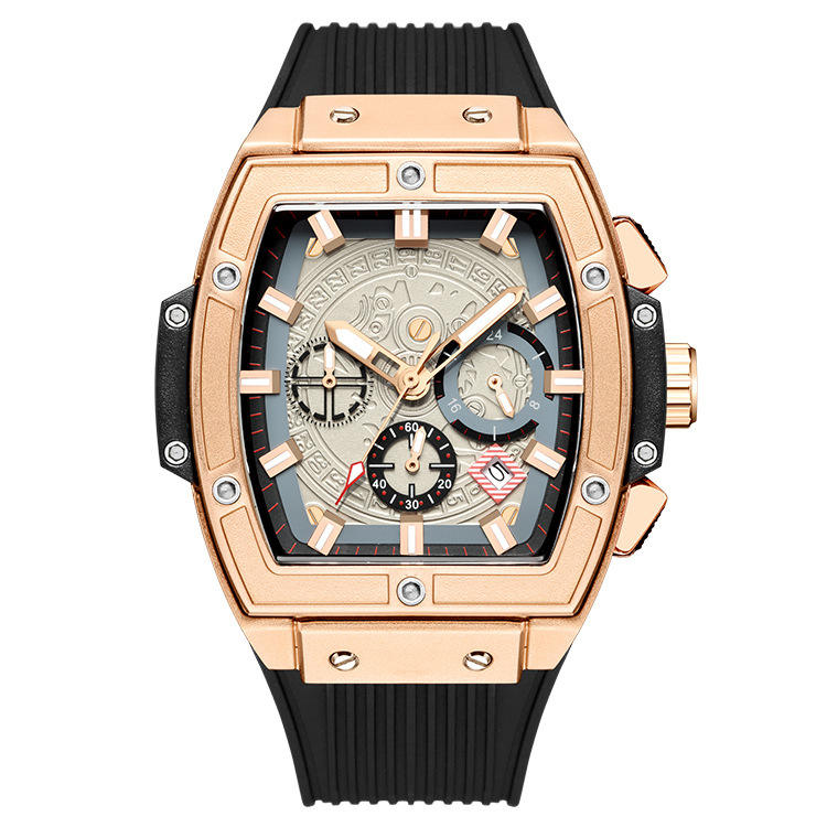 Elegante Reloj de Hombre con Forma de Barril, Reloj de Cuarzo Cronógrafo de Silicona Multifuncional para Exteriores