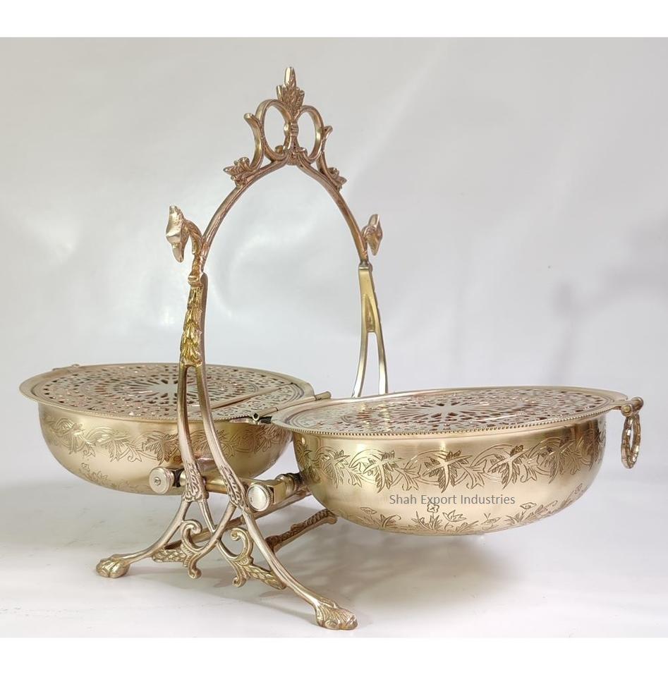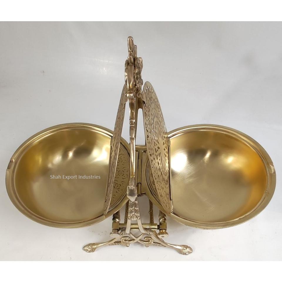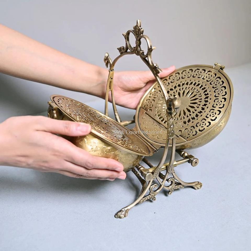 Elegante Caja de galletas de doble concha de latón, plato plegable para servir, caja de barril de galleta dorada, Caddy de galleta victoriano
