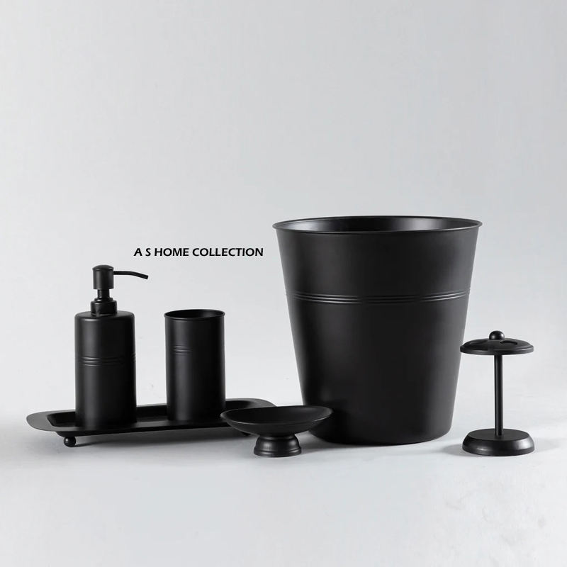 Elegante Juego de Baño de Diseño con Recubrimiento en Polvo Color Negro, 8 Piezas, Juego de Baño de Lujo para Villa, Artículos para el Hogar