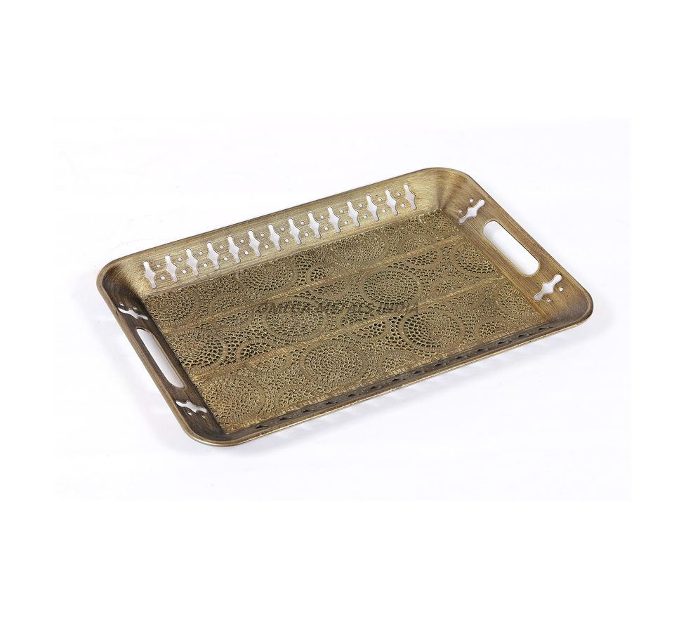Elegante bandeja rectangular negra para servir con base de vidrio y asas de ratán tejidas, perfecta para un comedor elegante y decoración del hogar