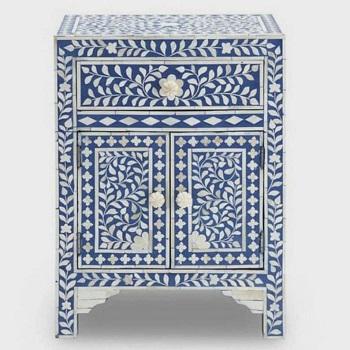 Elegante mesa de cajones con incrustaciones de hueso con detalles de ágata de F S International