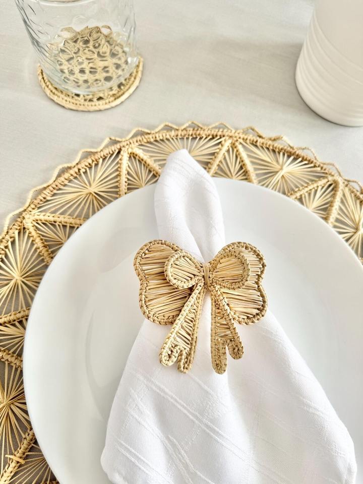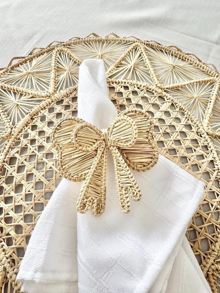 Elegante Porta Servilletas de Ratán en Forma de Lazo, Ideal para Decoración de Mesa Rústica, Cocina, Comedor, Bodas, Fiestas y Regalos