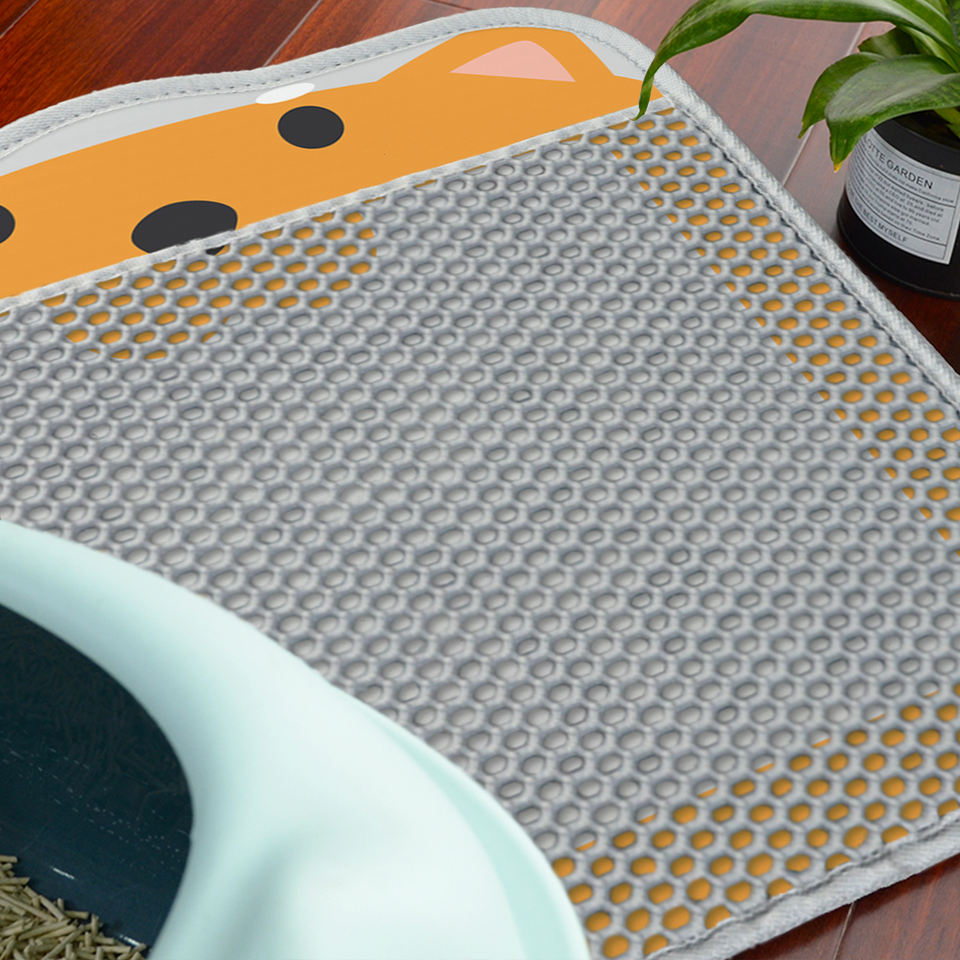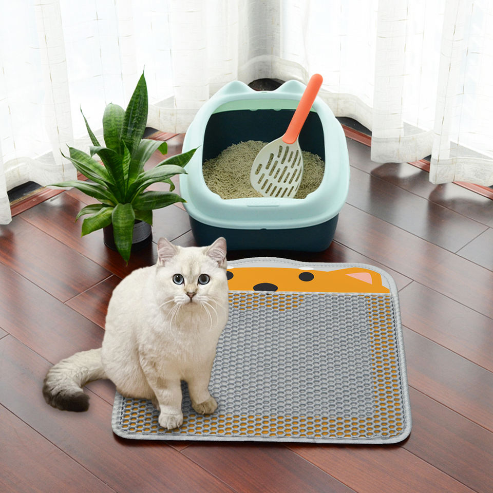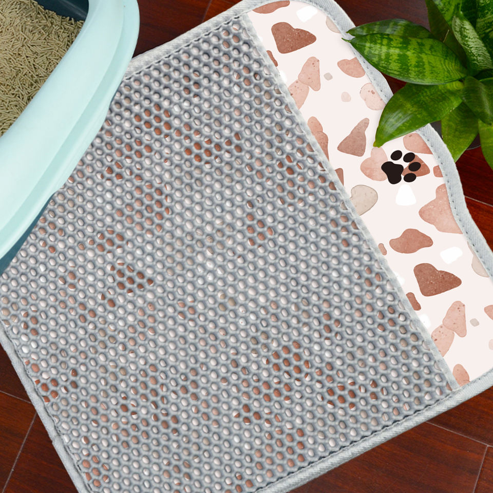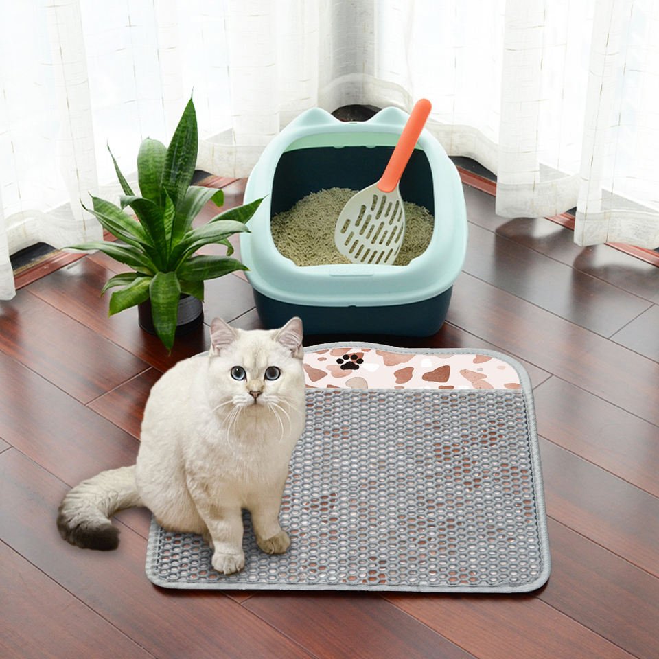 Elegante alfombrilla para arena para gatos, doble capa, EVA, nido de abeja, terrazo, diseño moderno, antideslizante, fácil de limpiar, estampado de pata