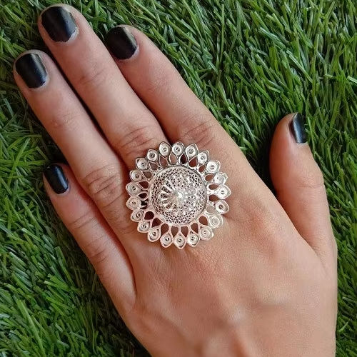 Nombre del producto:Anillo grande ajustable de filigrana de plata Gulbahar