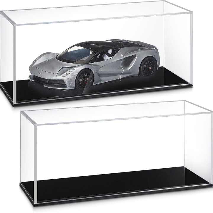 Elegante Vitrina Acrílica Transparente Ecológica con Base Negra para Vehículos a Escala, Excelente Regalo para Coleccionistas de Autos