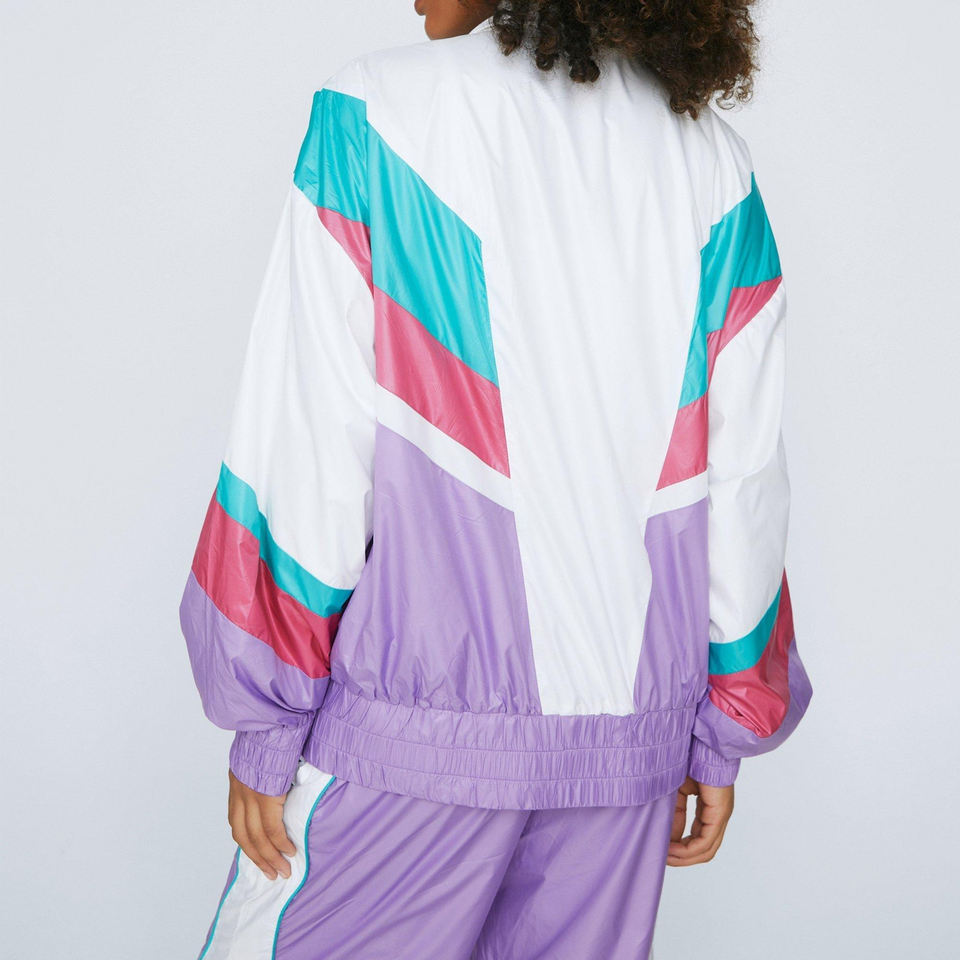 Elegante cortavientos de nailon con cremallera en bloque de color en lila-Personaliza colores, precios al por mayor, proveedor a granel