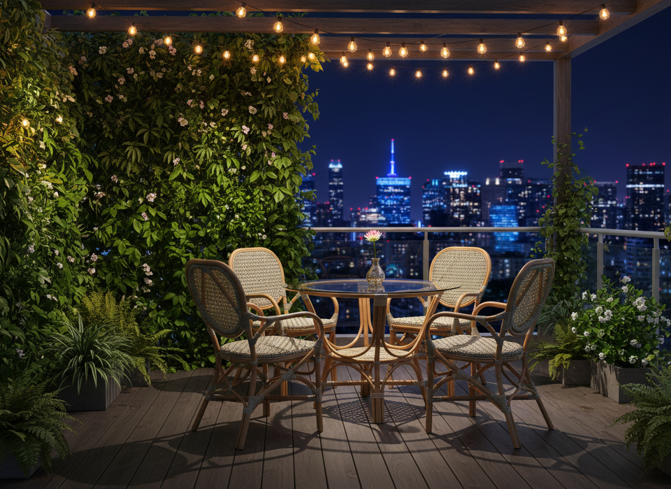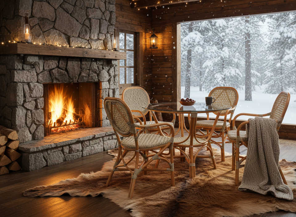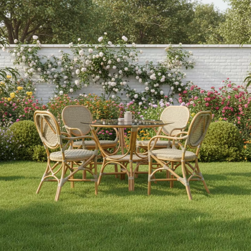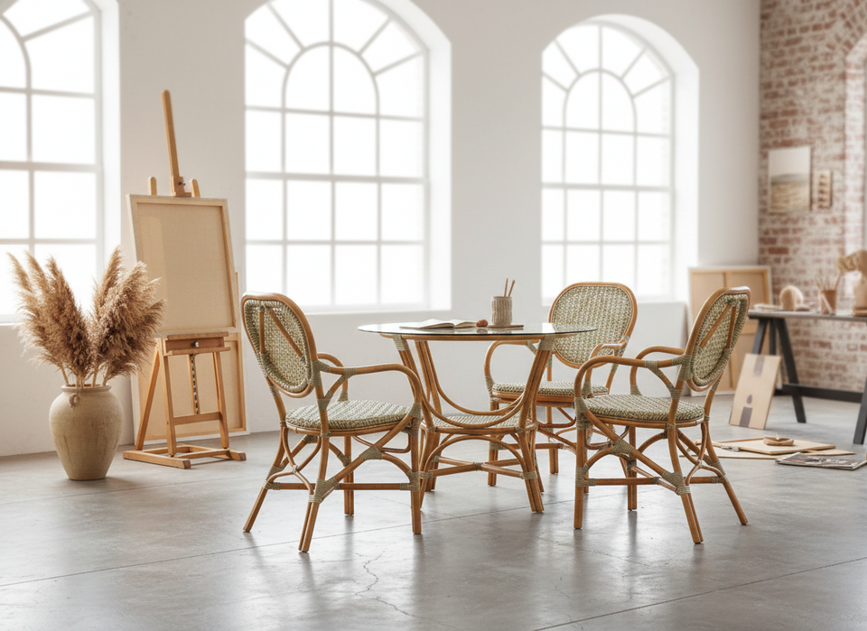 Elegante y Compacto Juego de Comedor de Mimbre de Ratán Estilo Asiático Jamaica, Muebles Cómodos para el Hogar, Apartamento, Hotel, Villa