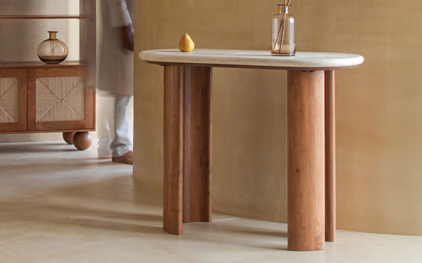 Elegante mesa de consola con un diseño moderno y elegante y superficie funcional perfecta para la decoración de la sala de estar o el pasillo de entrada