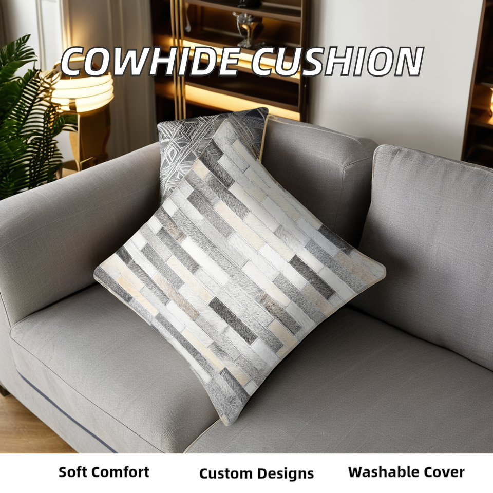 Funda de cojín de trabajo con parche de cuero auténtico de vaca con estilo, asientos cómodos, decoración textil para el hogar, producto de cuero de calidad