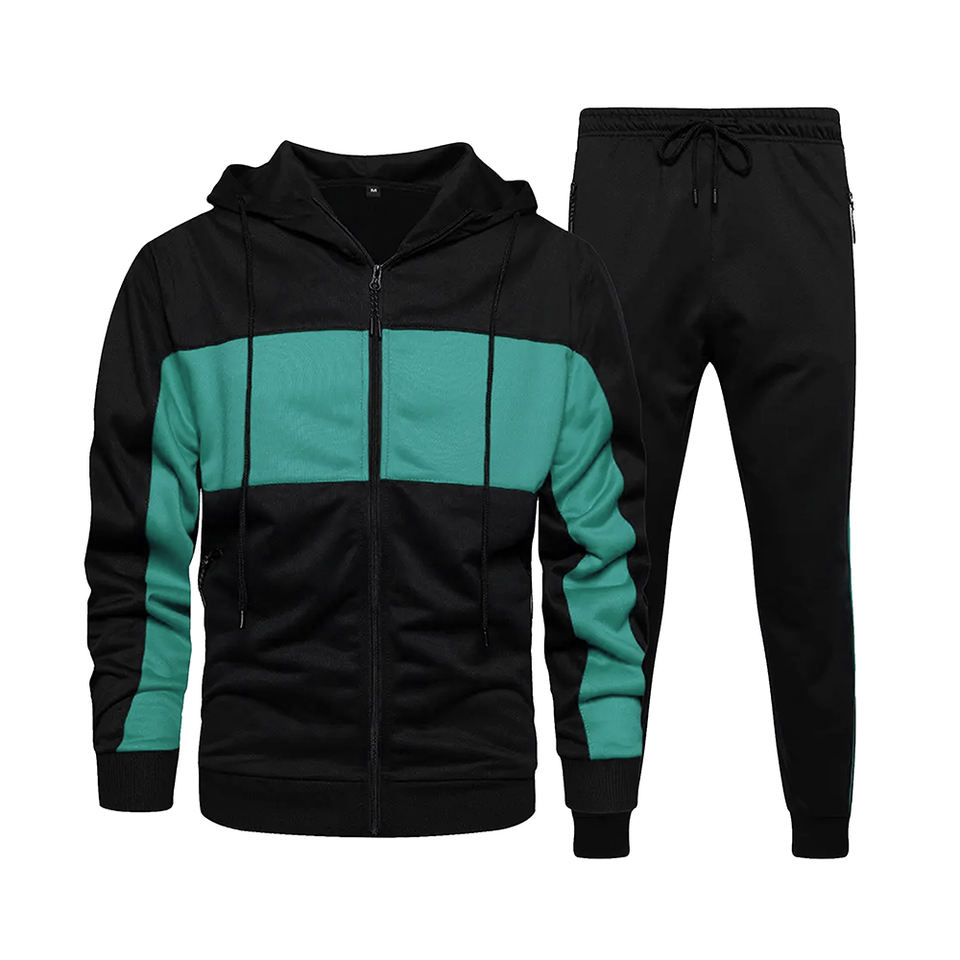 Chándales elegantes hechos a medida para hombres adultos en negro y verde con diseño de cremallera de manga larga de talla grande ropa de moda